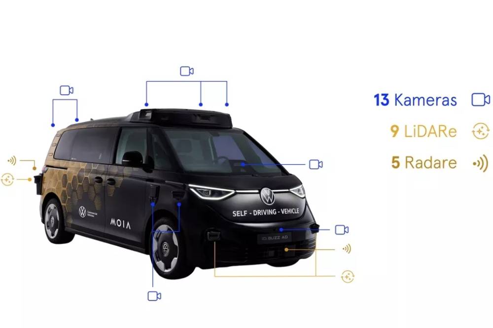 Φυσικά, τα πραγματικά νέα είναι το αυτόνομο σύστημα οδήγησης. Η MOIA δήλωσε ότι το βαν διαθέτει συνολικά 27 αισθητήρες, συμπεριλαμβανομένων 13 καμερών, 9 LiDAR και 5 ραντάρ. Αυτό δίνει στο ID.Buzz AD μια «ολοκληρωμένη, πλεονάζουσα θέα 360 μοιρών του περιβάλλοντός του». Η εταιρεία πρόσθεσε ότι το βαν χρησιμοποιεί «το σύστημα αυτόνομης οδήγησης της Mobileye, μαζί με μια ιδιόκτητη πλατφόρμα οικοσυστήματος Autonomous Driving Mobility as a Service (AD MaaS)».