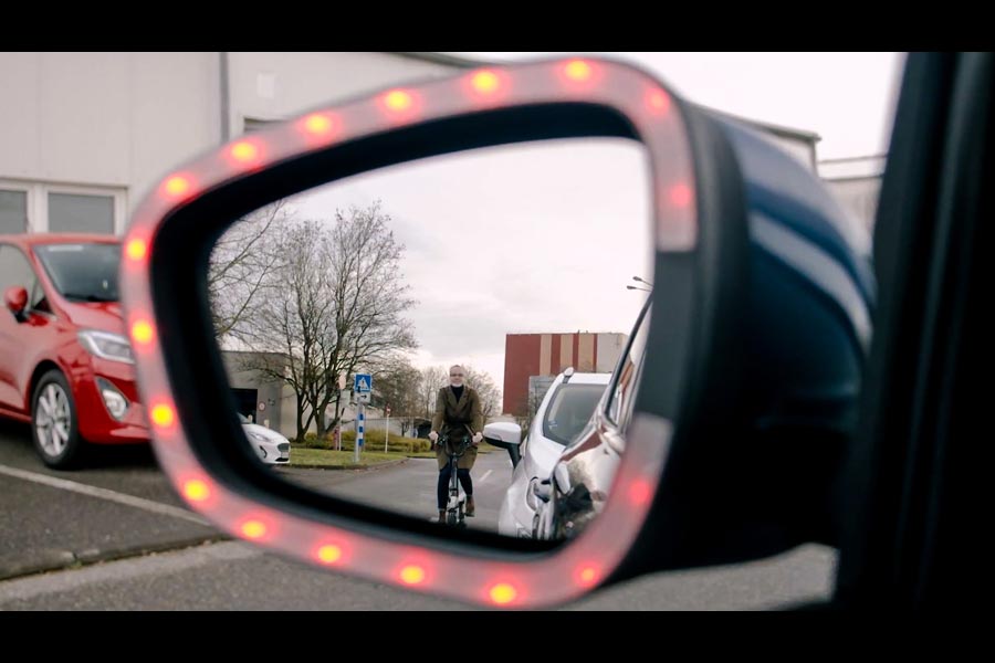 Χρησιμοποιώντας τους υπάρχοντες αισθητήρες, το Exit Warning διαβάζει και αναλύει τις κινήσεις των χρηστών του δρόμου – είτε πρόκειται για ποδηλάτες είτε για χρήστες ηλεκτρικών πατινιών – που πλησιάζουν από την αριστερή ή τη δεξιά πλευρά.