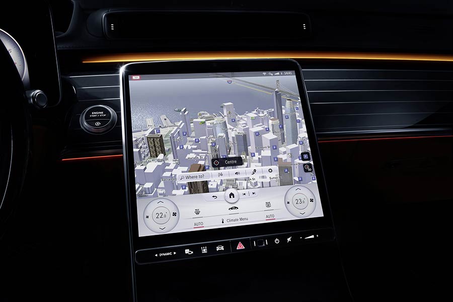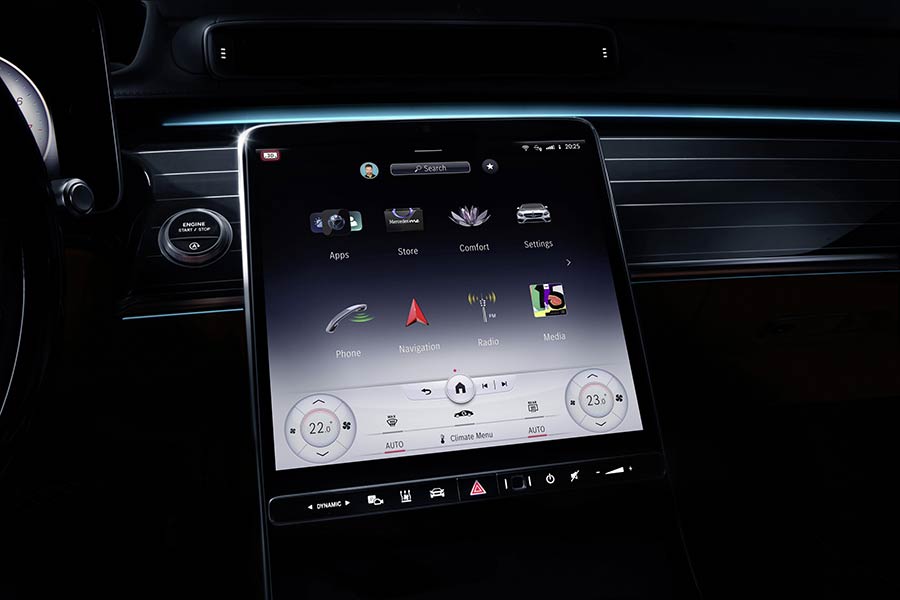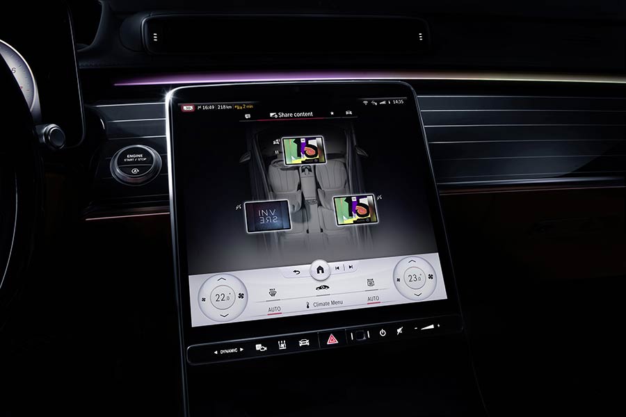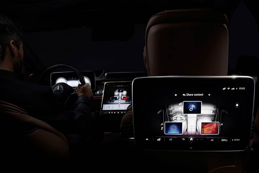 Το εσωτερικό του αυτοκινήτου έχει γίνει ακόμη πιο ψηφιακό και ευφυές, καθώς το hardware και το λογισμικό έχουν κάνει άλματα προόδου: φωτεινές ενδείξεις σε έως πέντε μεγάλες οθόνες, εν μέρει με τεχνολογία OLED, διευκολύνουν ακόμη πιο περισσότερο τον χειρισμό και τις λειτουργίες ανέσεων του αυτοκινήτου. Ο ανθρώπινος παράγοντας βρίσκεται πάντα στο επίκεντρο. Οι δυνατότητες εξατομίκευσης και διαισθητικού χειρισμού διευρύνθηκαν ακόμη περισσότερο, τόσο για τους πίσω επιβάτες όσο και για τον οδηγό: για παράδειγμα, η νέα τρισδιάστατη οθόνη οδηγού προσφέρει, για πρώτη φορά, καλύτερη αντίληψη του χώρου με το πάτημα ενός κουμπιού. Ρεαλιστικό, τρισδιάστατο –οπτικά – αποτέλεσμα, χωρίς να χρειάζεται να φοράτε γυαλιά 3D.