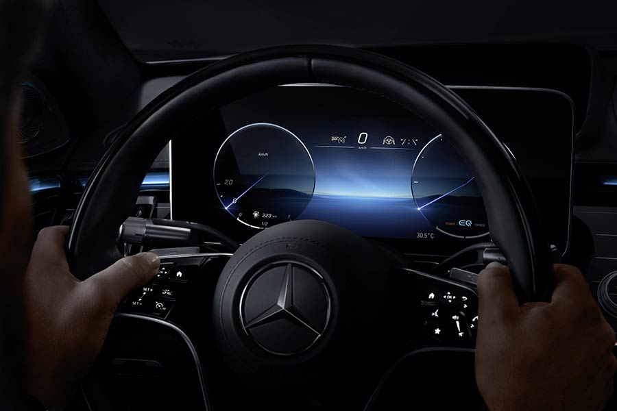 Η νέα S-Class αποτελεί εμπειρία για όλες σχεδόν τις αισθήσεις – όραση, αφή και ακοή –, ενώ προσφέρει πολυάριθμες καινοτομίες στα θέματα της υποβοήθησης οδήγησης, της προστασίας και της αλληλεπίδρασης.