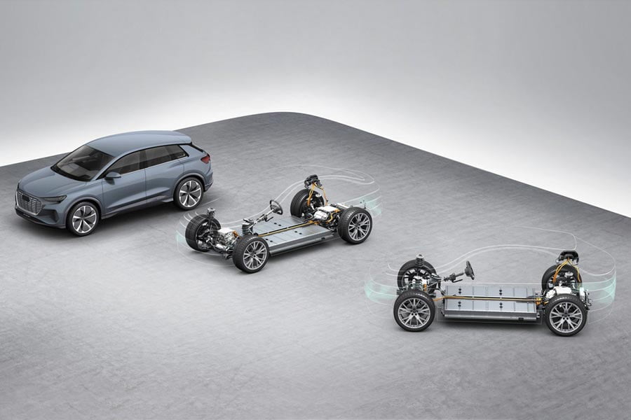 Η πλατφόρμα MEB προορίζεται για τα μελλοντικά μικρομεσαία και μεσαία μοντέλα της Audi. Λόγω του ότι είναι σχεδιασμένη αποκλειστικά για ηλεκτρικά οχήματα, θα προσφέρει κόμπακτ ηλεκτρικούς κινητήρες και μπαταρίες ιόντων – λιθίου διαφορετικών μεγεθών και χωρητικοτήτων. Το Μάρτιο του 2019 η Audi παρουσίασε το πρωτότυπο Q4 e-tron, το οποίο θα είναι ένα SUV ίδιας κατηγορίας με το Q3 (μήκος 4,59 μ. και μεταξόνιο 2,76 μ.).