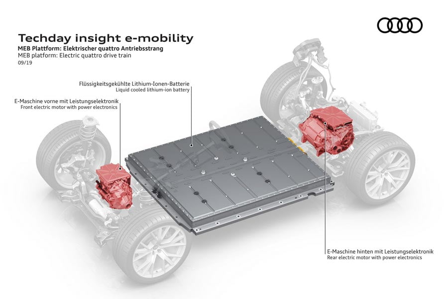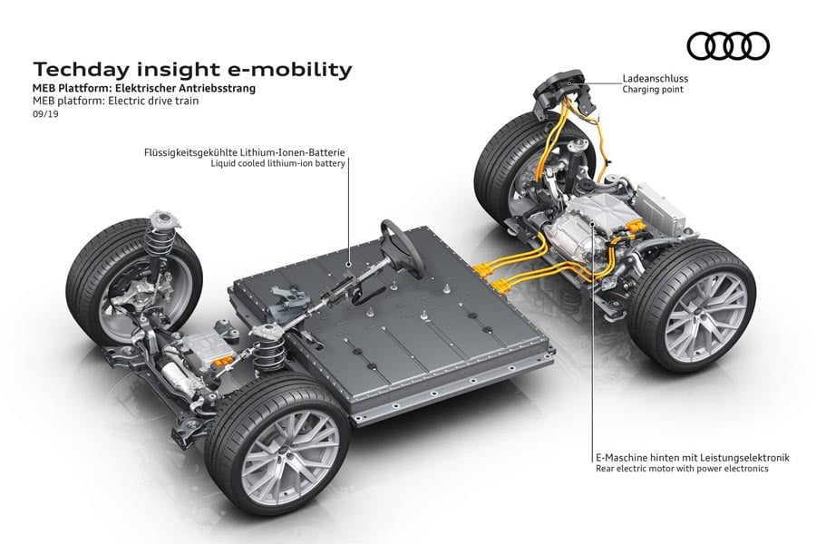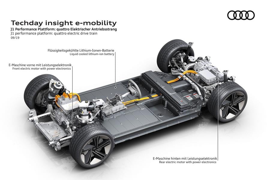 Για τα μεγάλα και πολυτελή μοντέλα της, η Audi θα χρησιμοποιήσει την πλατφόρμα Premium Platform Electric (PPE), η οποία εξελίχθηκε σε συνεργασία με την Porsche. Θα διαθέτει υψηλή τεχνολογία και με βάση αυτή θα δημιουργηθούν SUV, Sportbacks, Avants and Crossovers σε διάφορες εκδόσεις και τύπους. Οι αρχικές εκδόσεις θα έχουν ένα ηλεκτροκινητήρα εμπρός και οι κορυφαίες θα εφοδιάζονται και με πίσω ηλεκτρικό μοτέρ.