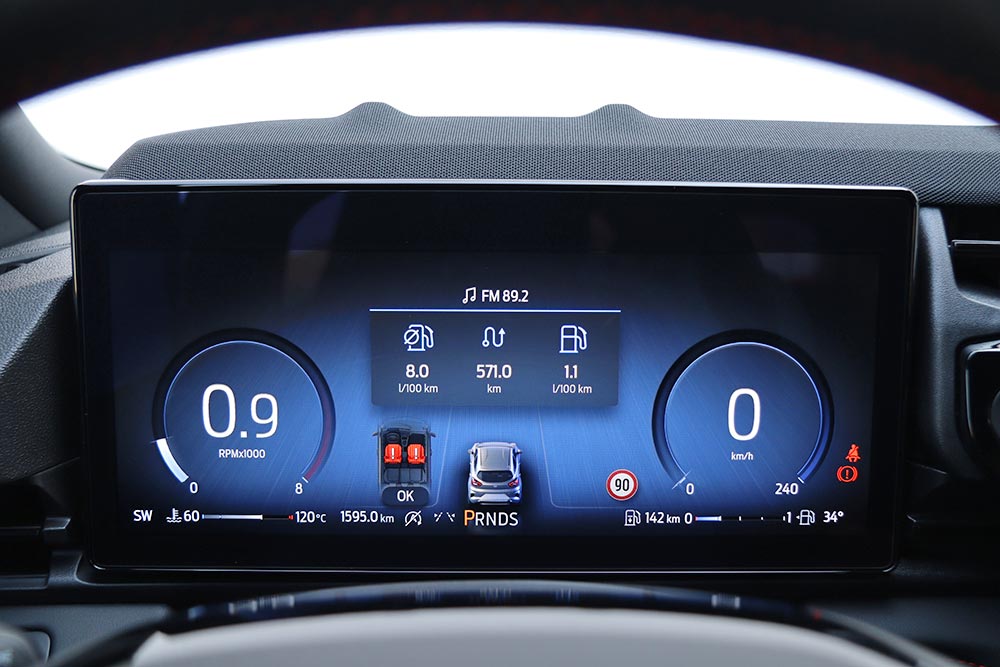 Στην πλήρως αναβαθμισμένη καμπίνα του Ford Puma τις εντυπώσεις κλέβουν οι προηγμένες ψηφιακές οθόνες. Όλες οι εκδόσεις του μοντέλου διαθέτουν ψηφιακό πίνακα οργάνων 12,8 ιντσών με προσαρμοζόμενες ενδείξεις, ώστε κάθε φορά να προβάλλονται με ευκρινή γραφικά οι πληροφορίες που οι οδηγοί θεωρούν πιο χρήσιμες. Ένα ακόμα highlight είναι η κεντρική οθόνη αφής των 12 ιντσών με οριζόντιο προσανατολισμό, που είναι τοποθετημένη ψηλά στην κεντρική κονσόλα δίνοντας την αίσθηση ότι «αιωρείται». Αυτή έχει κλίση προς τη μεριά του οδηγού ώστε να διευκολύνει την αλληλεπίδραση και να βελτιώνει την εργονομία.