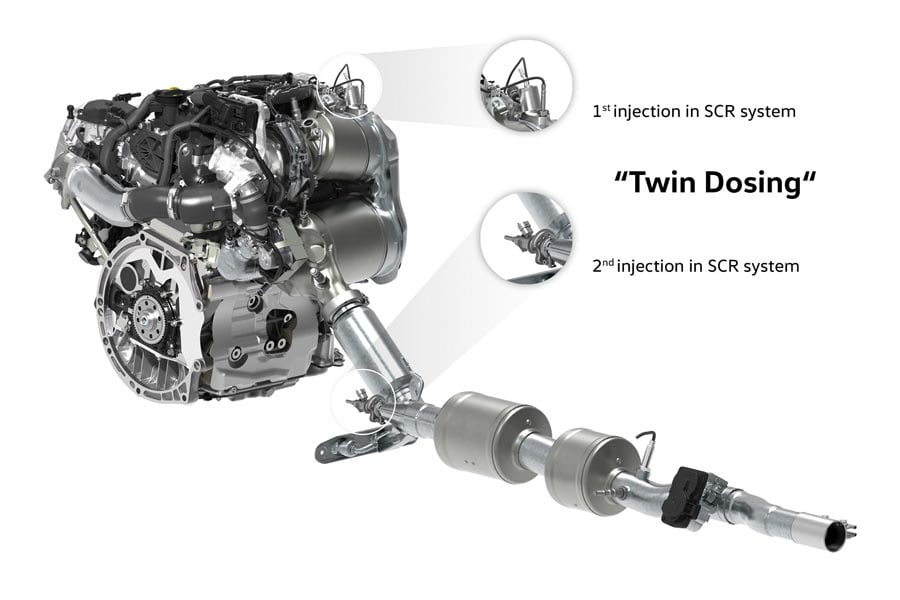 Η υιοθέτηση του συστήματος διπλής δόσης, με τη χρήση ενός επιπλέον καταλύτη SCR, εξασφαλίζει ότι η διάσπαση των NOx θα συνεχιστεί σε μεγαλύτερο εύρος θερμοκρασιών, ακόμα και όταν ο κινητήρας λειτουργεί με μεγάλο φορτίο και πολλές στροφές για παρατεταμένο χρονικό διάστημα. Για παράδειγμα, η οδήγηση με μεγάλες ταχύτητες στον αυτοκινητόδρομο, καθώς και όταν το αυτοκίνητο κινείται σε ανηφόρα, ειδικά αν είναι πλήρως φορτωμένο ή ρυμουλκεί τρέιλερ.