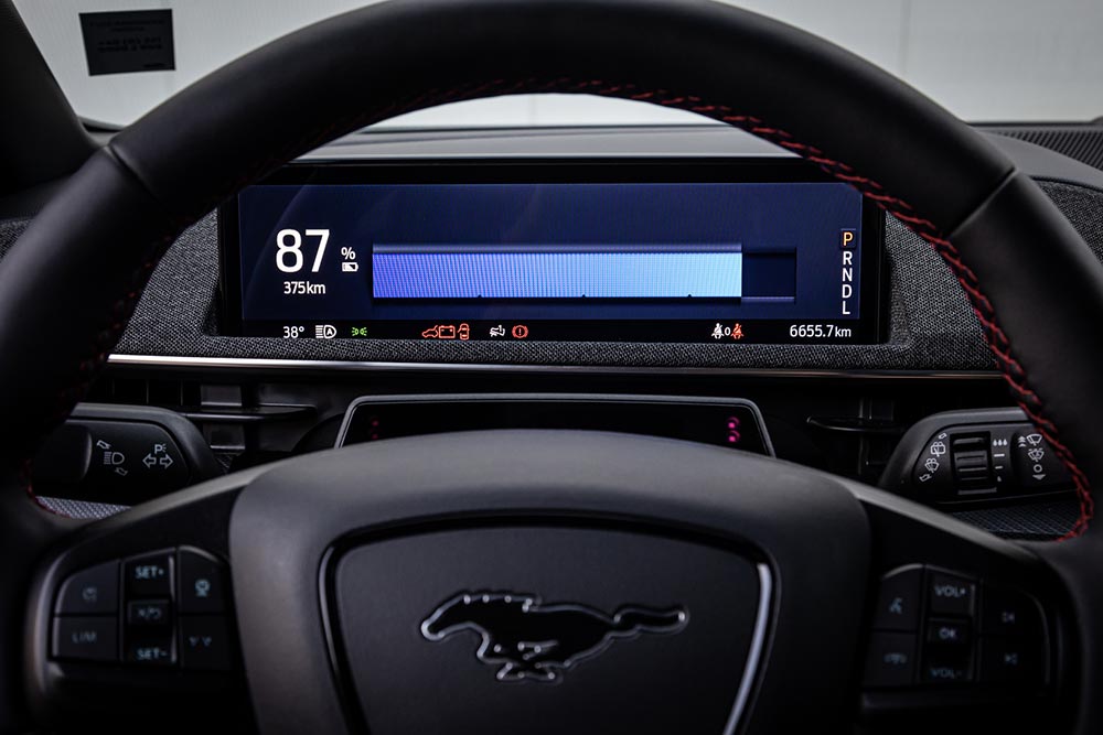 Σε ότι αφορά τον προσφερόμενο εξοπλισμό, η Mustang Mach-E είναι αρκετά πλούσια μιας και η αρχική έκδοση Base με την κίνηση στον πίσω άξονα περιλαμβάνει: