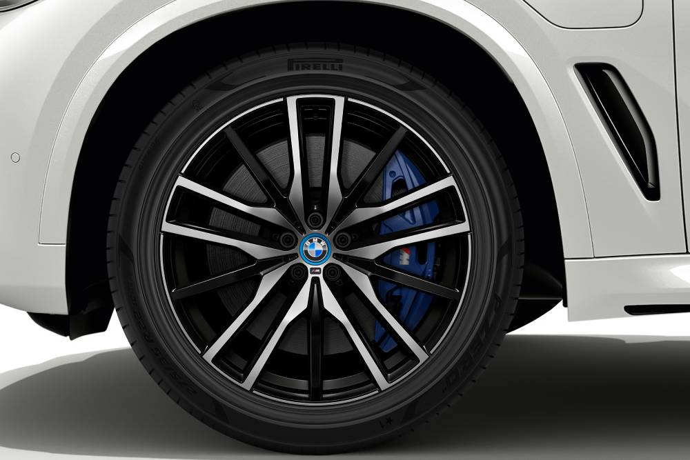 Τα «πατούμενα» της plug-in υβριδικής X5 είναι διάστασης 275/35 R22 εμπρός και 315/30 R22 πίσω, συνδράμοντας πέρα από την ελαχιστοποίηση του οικολογικού αποτυπώματος, στη μείωση της κατανάλωσης και του θορύβου. Όντας ελαστικά χαμηλής τριβής, παίζουν σημαντικό ρόλο στην επίτευξη των στοιχείων κατανάλωσης και εκπομπών ρύπων που ανακοινώνουν οι Βαυαροί για το SUV τους (1,2-1,7 λίτρα/100 χλμ. μέση τιμή κατανάλωσης καυσίμου, 24,3-27,7 kW/h μέση τιμή κατανάλωσης ηλεκτρικής ενέργειας, 29-37 CO2/χλμ. εκπομπές ρύπων). Η ηλεκτρική αυτονομία φτάνει στα 77-88 χλμ., με το συνδυασμό ηλεκτροκινητήρα-εξακύλινδρου εν σειρά τούρμπο 3 λίτρων να παράγει συνδυαστικά 394 άλογα και 600 Nm ροπής.