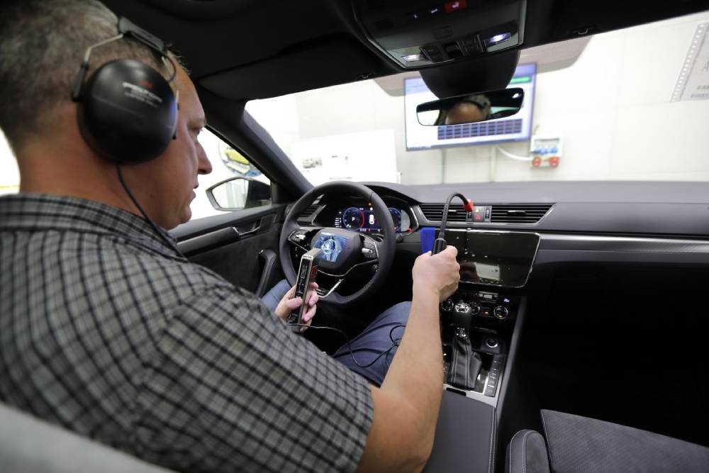 To Shaker είναι ένα από τα βασικότερα εργαλεία που φροντίζουν για αυτό, τεστάροντας ηχομόνωση, ανάρτηση και ποιότητα κατασκευής με απλό, αλλά συνάμα προηγμένο τρόπο. Όπως μας εξηγεί η Skoda, το Shaker αξιοποιεί τα δεδομένα των πραγματικών δοκιμών και εξασφαλίζει διάρκεια, επαναληψιμότητα και ακεραιότητα στις μετρήσεις. Τα αυτοκίνητα δοκιμάζονται σε πραγματικές συνθήκες, σε κανονικούς δρόμους και ειδικά διαμορφωμένα κομμάτια στην πίστα δοκιμών, με αισθητήρες να συλλέγουν δεδομένα για τη συχνότητα των δονήσεων, τον καταμερισμό τους στο σασί κλπ. Τα δεδομένα αυτά μεταφέρονται στους υπολογιστές του Shaker, το οποίο διαθέτει δυο ειδικούς βραχίονες που προσαρμόζονται στο πάτωμα, μέσω των ανάλογων υποδοχών.