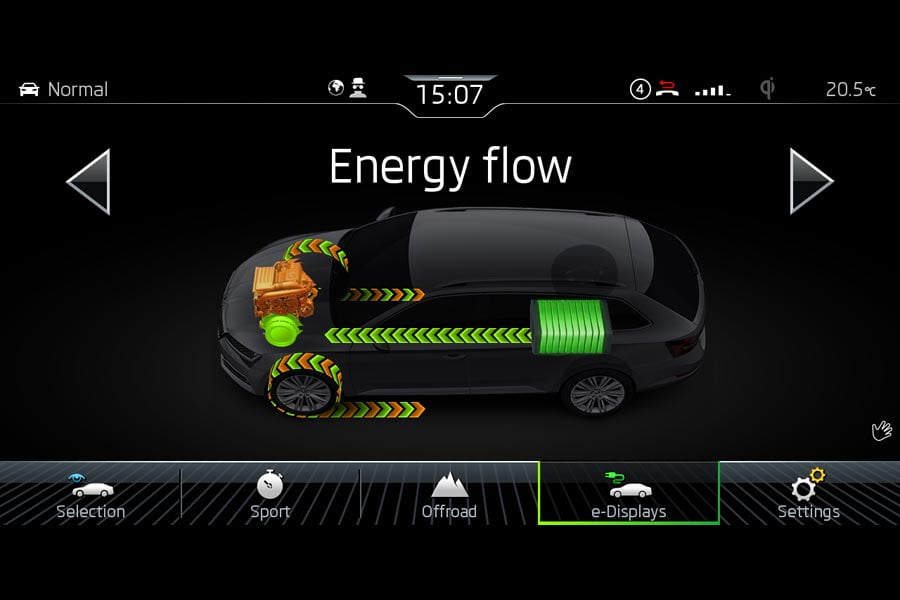 Το Superb iV μπορεί να κινηθεί αμιγώς ηλεκτρικά για αποστάσεις 55 χλμ. (μέτρηση WLTP).