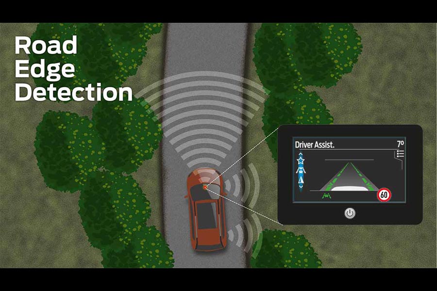 Σχεδιασμένο για χρήση σε αγροτικούς δρόμους, με ταχύτητες από 70 έως 110 χλμ./ώρα, το Road Edge Detection χρησιμοποιεί μία κάμερα τοποθετημένη κάτω από τον εσωτερικό καθρέπτη που παρακολουθεί τα άκρα του δρόμου 50 μ. μπροστά από το όχημα και σε εύρος 7 μ. από κάθε πλευρά.