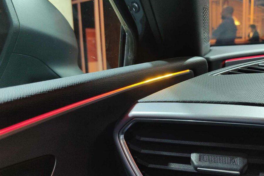 Κανονικά, ο οδηγός προειδοποιείται για όχημα σε τυφλή γωνία μέσω σήμανσης στον αντίστοιχο καθρέπτη. Είτε πρόκειται για μια λυχνία που απεικονίζεται στο κρύσταλλο, είτε για ένα φωτάκι στο εσωτερικό του καθρέπτη. Σε αρκετές περιπτώσεις, ωστόσο, δεν είναι ευδιάκριτη κυρίως λόγω ήλιου. Τι έκανε η SEAT για να επιλύσει το πρόβλημα; Χρησιμοποίησε τον ambient φωτισμό, φέρνοντας την προειδοποιητική σήμανση στο εσωτερικό της καμπίνας και σε τέτοιο σημείο που είναι πολύ δύσκολο να το βρει ο ήλιος. Όταν το σύστημα εντοπίσει όχημα σε τυφλό σημείο, φωτίζει το τμήμα της λωρίδας που διατρέχει το ταμπλό στο ύψος του καθρέπτη.
