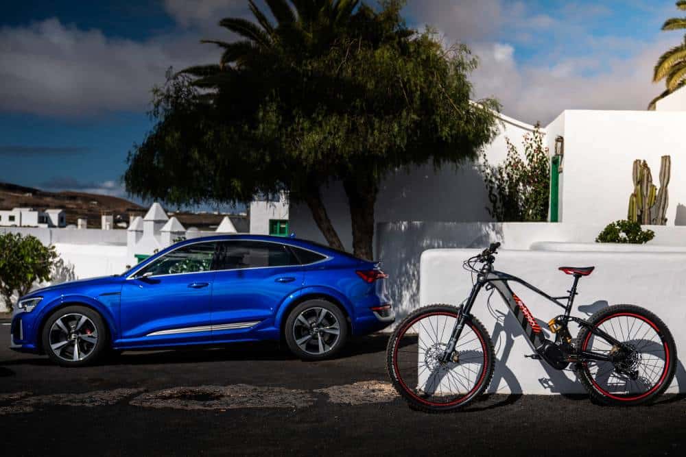Το απλούστατα ονομαζόμενο Audi Electric Mountain Bike φέρνει τα e-tron στους δυο τροχούς, όπως αναγράφεται η επωνυμία των ηλεκτρικών Audi στο σκελετό του. Ένας σκελετός που αποτελείται από ανθρακονήματα και αλουμίνιο, επωφελούμενο από αναρτήσεις της Öhlins (RXF 38 M.2 μπροστά, TTX 22M πίσω), υδραυλικά δισκόφρενα και ταχύτητες SRAM GX. Τα καλούδια της Öhlins παρέχουν διαδρομή ανάρτησης 180 χλστ., συνδυαζόμενα με 29άρη τροχό εμπρός-27,5 πίσω και χωμάτινα ελαστικά για μεγάλες off road δυνατότητες, που αντλούν έμπνευση -όπως και τα χρώματα- από το αγωνιστικό RS Q e-tron Dakar.