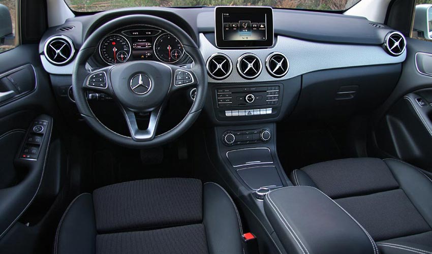 Στον θάλαμο των επιβατών της Mercedes B 180 d κυρίαρχο στοιχείο αποτελεί η ιδιαίτερα προσεγμένη ποιότητα κατασκευής, με μαλακά πλαστικά στο ταμπλό και στις πόρτες, στιβαρή συναρμογή και πολύ καλό φινίρισμα. Σχεδιαστικά κυριαρχούν οι στρογγυλοί αεραγωγοί και η επένδυση αλουμινίου στο ταμπλό, στο κέντρο του οποίο και ψηλά είναι τοποθετημένη η οθόνη του συστήματος πολυμέσων. Το εσωτερικό της B-Class προσφέρει παράλληλα άνετους χώρους για όλους τους επιβάτες, καθώς και μεγάλο χώρο αποσκευών 488 λίτρων με εκμεταλλεύσιμο σχήμα και μεγάλο άνοιγμα.