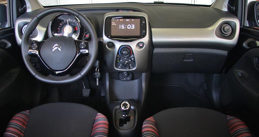 Το Citroen C1 καταφέρνει και διαφοροποιείται αισθητά από τα αδερφάκια του της κοινοπραξίας PSA – Toyota, ενώ παράλληλα είναι αρκετά ευχάριστη η καμπίνα του εμφανισιακά και με μεγάλες δυνατότητες εξατομίκευσης. Το ταμπλό χαρακτηρίζεται από την διχρωμία του (αν και στην συγκεκριμένη έκδοση μαύρο-γκρι δεν κάνουν ιδιαίτερη αίσθηση) και τον ευμεγέθη και στρογγυλό πίνακα οργάνων, που ωστόσο δεν φέρει και πάλι στάνταρ στροφόμετρο, ενώ πόντους κερδίζει η ανεξάρτητη από το ταμπλό κεντρικά τοποθετημένη κεντρική κονσόλα που φιλοξενεί το ηχοσύστημα και σε κάποιες εκδόσεις οθόνη αφής 7,0 ιντσών με σύστημα Mirror Screen για χρήση smartphones συσκευών. Τα υλικά είναι σκληρά, στο σύνολό τους με καλή συναρμογή. Οι χώροι είναι ελαφρώς αυξημένοι σε σχέση με το απελθόν μοντέλο και φιλοξενούνται δίχως πρόβλημα τέσσερις ενήλικες κανονικού αναστήματος. Θήκες μικροαντικειμένων υπάρχουν αρκετές στην καμπίνα αλλά για τους εμπρός επιβάτες, ενώ οι πίσω θα νιώσουν ριγμένοι και από το γεγονός πως τα παράθυρά τους ανοίγουν προς τα έξω με μεντεσέδες. Τέλος, ο χώρος αποσκευών, είναι στα 196 λίτρα (με κιτ επισκευής ελαστικού και 180 λίτρα με ρεζέρβα), με μικρό άνοιγμα πάντως που δυσκολεύει σε κάποιες περιπτώσεις την φορτοεκφόρτωση αντικειμένων.