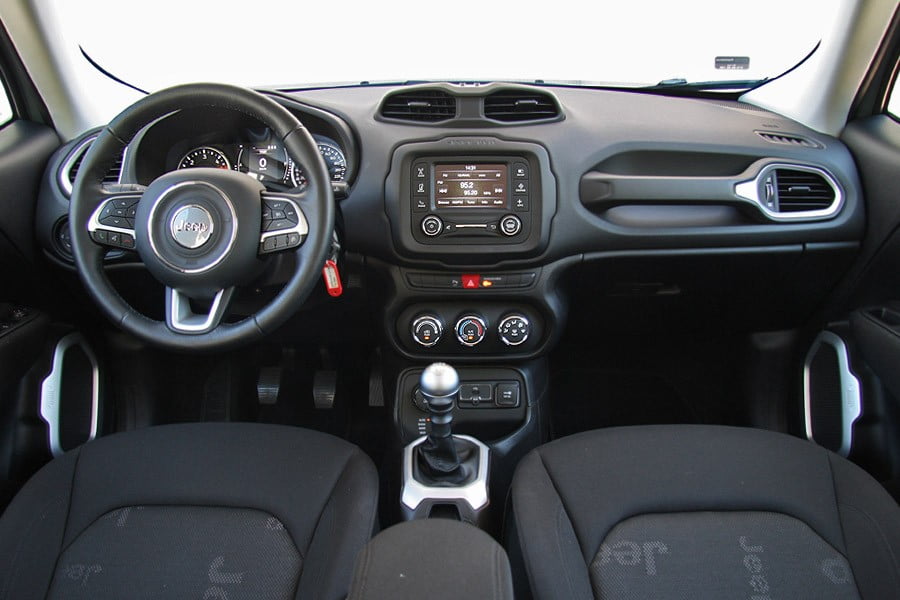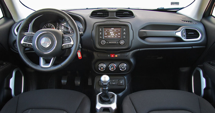 Ο θάλαμος των επιβατών του Renegade διαθέτει ευχάριστη συνολικά εικόνα με ξεχωριστά σχεδιαστικά γνωρίσματα, τα οποία ενισχύουν τον εκτός δρόμου χαρακτήρα του. Παράλληλα, διακρίνεται για την πολύ καλή ποιότητα κατασκευής, καθώς το ταμπλό είναι κατασκευασμένο στο μεγαλύτερο μέρος του από παχύ αφρώδες υλικό, ενώ η προσεγμένη συναρμογή αποτρέπει την παρουσία ενοχλητικών τριγμών. Ο οδηγός κάθεται ψηλά και δεν θα αντιμετωπίσει κάποιο πρόβλημα με την εργονομία, όμως οι εμπρός παχιές κολόνες περιορίζουν εν μέρει την ορατότητα. Στα θετικά στοιχεία του εσωτερικού του μικρού Jeep ανήκουν οι άνετοι χώροι για τις μετακινήσεις τεσσάρων ενήλικων επιβατών, ενώ το πορτ μπαγκάζ είναι βαθύ, τετραγωνισμένο, με μεγάλο άνοιγμα και πλήρως εκμεταλλεύσιμη χωρητικότητα 351 λίτρων.