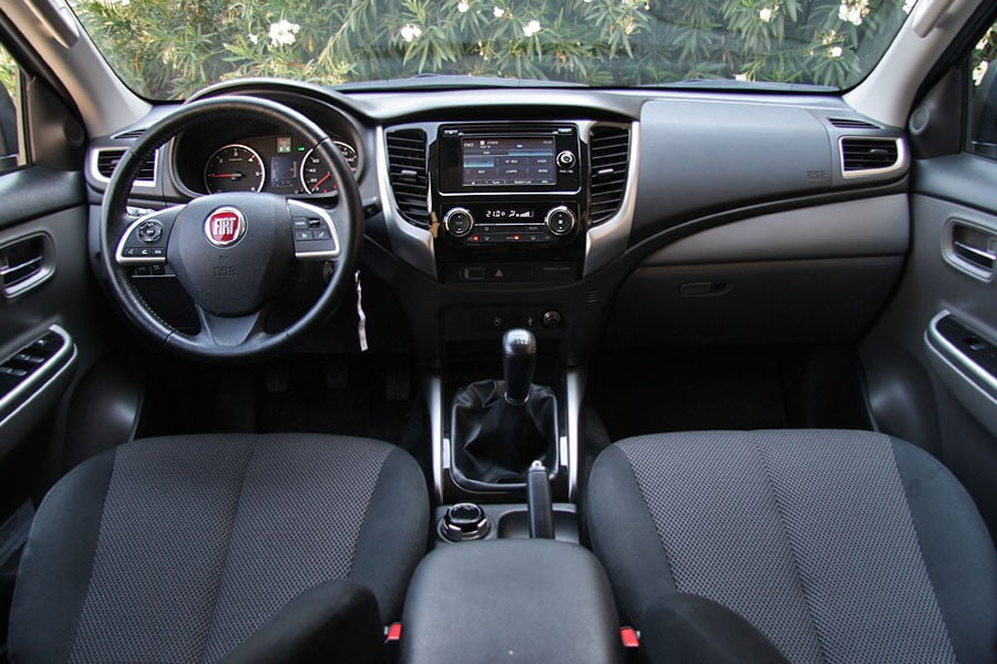 Το εσωτερικό του Fiat Fullback δεν έχει καμία απολύτως διαφορά με αυτό του Mitsubishi L200. Και αυτό δεν είναι καθόλου μα καθόλου κακό. Διαθέτει μοντέρνο σχεδιασμό και προσφέρει άνετους χώρους στους επιβάτες του, χάρη στο μεγάλο διαθέσιμο πλάτος και ύψος. Τα καθίσματα εμπρός είναι μεγάλα και αναπαυτικά, ενώ το πίσω είναι επίσης μεγάλο και επίπεδο και μπορούν να βολευτούν τρεις ενήλικες ακόμη και αν οι δύο είναι μεγαλόσωμοι. Τα υλικά που έχουν χρησιμοποιηθεί αν και είναι σκληρά είναι ποιοτικά, ενώ σε πείθουν για την ανθεκτικότητά τους στην σκληρή χρήση. Ο οδηγός δεν θα δυσκολευτεί να βρει την κατάλληλη θέση οδήγησης και κάθεται ψηλά απολαμβάνοντας πολύ καλή ορατότητα. Επίσης, τα διάφορα επιμέρους χειριστήρια προσφέρουν καλή εργονομία και το αυτοκίνητο είναι εξοπλισμένο με όλες τις σύγχρονες ανέσεις. Χώροι για αντικείμενα υπάρχουν αρκετοί και είναι μεγάλοι.