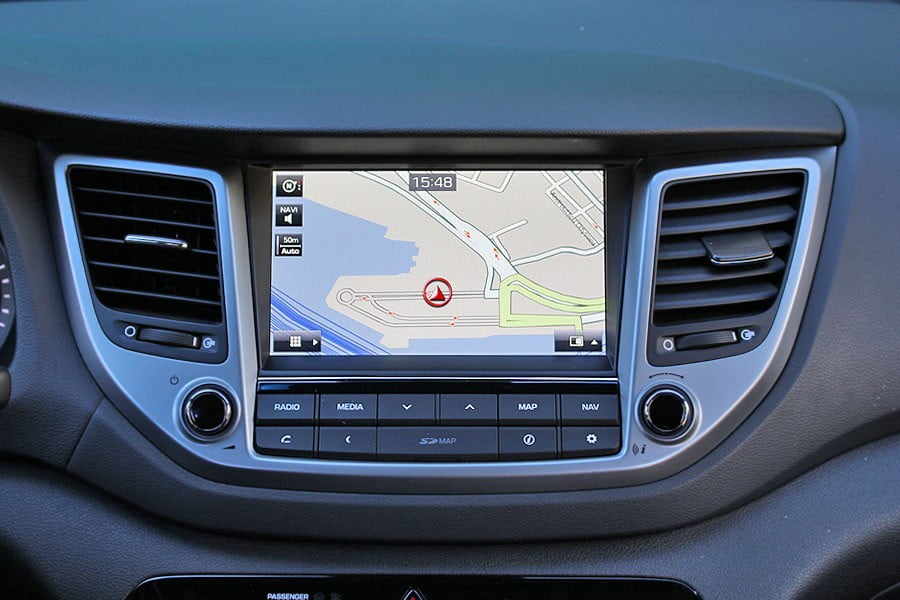 Στο εσωτερικό του νέου Tucson η Hyundai δίνει έμφαση στην πρακτικότητα και την πολύ καλή ευρυχωρία, ενώ παράλληλα οι σχεδιαστές της έχουν δημιουργήσει ένα ταμπλό με όμορφες, καθαρές γραμμές, στο οποίο τις εντυπώσεις κλέβει η ψηλά τοποθετημένη έγχρωμη οθόνη αφής 8 ιντσών, που διαθέτει και περιστροφικά χειριστήρια στη βάση της. Τα υλικά που έχουν κατασκευαστεί είναι ως επί το πλείστον σκληρά στην αφή, με πολύ καλή συναρμογή, ενώ μαλακό πλαστικό συναντάται μόνο στο ανώτερο οριζόντιο κεντρικό τμήμα του ταμπλό. Από την άλλη, άφθονες είναι οι θήκες για μικροαντικείμενα στην κεντρική κονσόλα, το εσωτερικό των θυρών, ενώ υπάρχει και το απαραίτητο ντουλαπάκι του συνοδηγού. Άνετοι είναι οι χώροι στο πίσω κάθισμα του αυτοκινήτου, με το διαθέσιμο πλάτος να βολεύει στη μεταφορά 3 ενηλίκων επιβατών. Προσόν της πλάτης του πίσω καθίσματος αποτελεί και το γεγονός ότι μπορεί να ρυθμιστεί και η κλίση της, ενώ διαιρείται και σε ποσοστό 60:40. Την όλη πρακτικότητα της επιλογής τονίζει και η πολύ καλή χωρητικότητα του πορτ-μπαγκάζ, η οποία βρίσκεται στα 488 λίτρα. Μάλιστα, ακριβώς κάτω από το δάπεδο, υπάρχει και στάνταρ ρεζέρβα κανονικών διαστάσεων.
