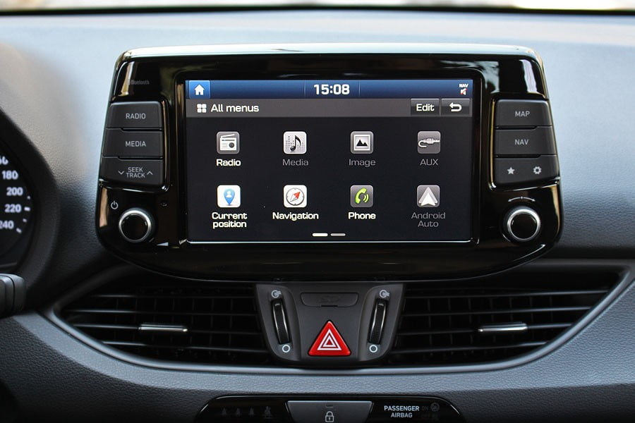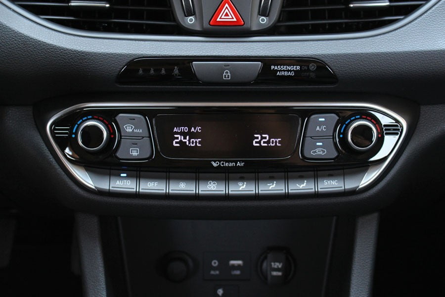 Εντελώς νέο είναι και το εσωτερικό του 3ης γενιάς i30, το οποίο απέκτησε πιο μινιμάλ εικόνα, έναντι της πιο φλύαρης σχεδίασης στο προγενέστερο μοντέλο. Στο ταμπλό του με τις απαλές καμπύλες κυριαρχεί στο κέντρο η στάνταρ έγχρωμη οθόνη LCD αφής 8 ιντσών, με Bluetooth, audio streaming, εργοστασιακό σύστημα πλοήγησης, κάμερα οπισθοπορείας και διάφορες ακόμα λειτουργίες. Πιο κάτω συναντάται το σύστημα του διζωνικού κλιματισμού, ενώ στη βάση της κεντρικής κονσόλας υπάρχει μια θήκη και είσοδοι Aux, USB και πρίζα 12V. Την σύγχρονη εικόνα συμπληρώνει και ο πλήρης ενδείξεων πίνακας οργάνων με την οθόνη TFT 3,5 ιντσών του trip computer. Ο οδηγός δεν θα αντιμετωπίσει κάποιο πρόβλημα με την εργονομία των επιμέρους χειριστηρίων και θα βρει εύκολα την κατάλληλη θέση οδήγησης στο αναπαυτικό κάθισμα. Από πλευράς κατασκευής, το μεγαλύτερο μέρος του ταμπλό αποτελείται από μαλακό πλαστικό, το οποίο συναντάται και σε ένα τμήμα των θυρών. Ποιοτικά είναι και τα σκληρά πλαστικά, ενώ πολύ προσεγμένη είναι η συναρμογή και το φινίρισμα σε όλη την καμπίνα. Στον τομέα των διαθέσιμων χώρων, το νέο i30 τοποθετείται στο μέσο όρο της κατηγορίας. Στο πίσω κάθισμα ο αέρας για τα πόδια είναι ικανοποιητικός, ωστόσο για τους πιο ψηλούς δεν υπάρχουν περίσσιες ανέσεις. Ο χώρος αποσκευών έχει χωρητικότητα 395 λίτρων (1.301 λτ. με με τα πίσω καθίσματα διπλωμένα), διαθέτει διπλό δάπεδο και είναι σχετικά ρηχός.