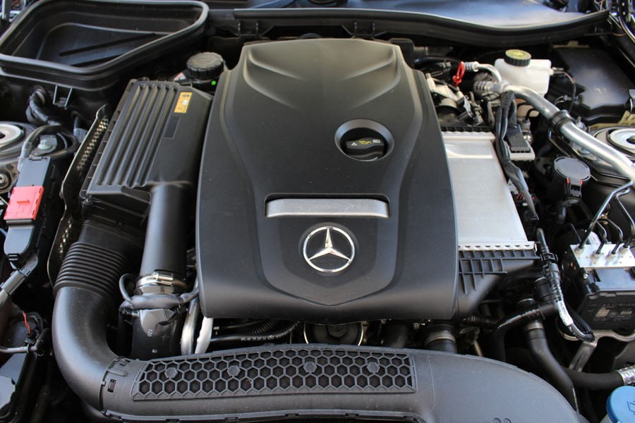 Ο 1.600άρης turbo κινητήρας βενζίνης της Mercedes SLC 180 μας είναι γνωστός και από άλλα μοντέλα της γερμανικής εταιρείας, αφού εφοδιάζει όλη την compact γκάμα (A-Class, B-Class, GLA, CLA), αλλά και τις μεγαλύτερες C-Class και E-Class. Έχει χωρητικότητα 1.595 κ.εκ. και ονομαστική απόδοση ισχύος 156 ίππων (στις 5.300 σ.α.λ.) με ροπή 250 Nm διαθέσιμα μόλις από τις 1.200 σ.α.λ. Στην SLC της δοκιμής μας, το μοτέρ αυτό συνδυάζεται με το εξαιρετικό 9τάχυτο, αυτόματο, διπλού συμπλέκτη κιβώτιο 9G-Tronic της εταιρείας, που προσφέρει και χειροκίνητες αλλαγές σχέσεων μέσω των paddles στο τιμόνι. Στην πράξη, ο κινητήρας καταφέρει να κινήσει σχετικά γρήγορα την SLC, όμως λόγω και του σχετικά αυξημένου βάρους του αυτοκινήτου (σχεδόν 1,5 τόνος κενό όχημα) οι επιταχύνσεις δεν είναι τόσο σπορτίφ όσο θα θέλαμε. Το αυτόματο κιβώτιο έχει πολύ καλή λειτουργία και προσπαθεί να βοηθήσει το έργο του κινητήρα ανεβάζοντας ή κατεβάζοντας πολύ γρήγορα τις διαθέσιμες σχέσεις, για να ανταποκριθεί άμεσα στον τρόπο οδήγησης του οδηγού. Η λειτουργία του, όπως και αυτή του μοτέρ, εξαρτάται και από το επιλεγμένο οδηγικό προφίλ του Drive Select, με τις επιλογές Economy, Comfort, Sport, Sport+ και Individual να είναι διαθέσιμες. Η χρήση της επιλογής Economy φροντίζει ώστε να μειώνει την κατανάλωση του αυτοκινήτου, με τη μέση τιμή που είδαμε κατά τη δοκιμή μας πάντως και με τη χρήση όλων των προφίλ, να βρίσκεται κοντά στα 10,0 λτ./100 χλμ.