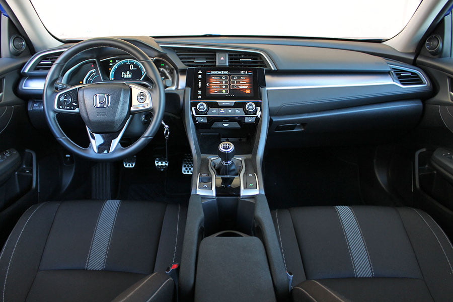 Το εσωτερικό του Civic Sedan είναι σχεδόν το ίδιο με αυτό της 5θυρης έκδοσης. Σε σχέση με το παρελθόν είναι βελτιωμένο σε κάθε τομέα. Έχει καλύτερη εργονομία, μεγαλύτερους χώρους και πιο σύγχρονη τεχνολογία. Ποιοτικά είναι συνολικά προσεγμένο τόσο σε υλικά, όσο σε φινίρισμα και συναρμογή. Μαλακά λεπτά πλαστικά συναντώνται στο μεγαλύτερο μέρος του ταμπλό και στο πάνω μέρος των εμπρός θυρών. Ο ψηφιακός πίνακας οργάνων είναι πλέον ενιαίος και πιο ευανάγνωστος (αντί του διπλού που υπήρχε πριν), ενώ ο οδηγός κάθεται πιο βολικά, χάρη στο πιο χαμηλά τοποθετημένο κάθισμα κατά 35 χλστ. τα οποία έχουν μεγάλο εύρος ρυθμίσεων και θα βολέψουν κάθε σωματότυπο.