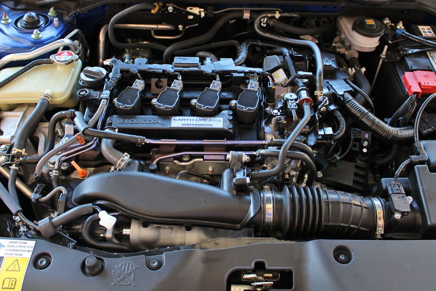 Ο νέος 4κύλινδρος κινητήρας 1.5 VTEC Turbo με άμεσο ψεκασμό, υπερτροφοδότη μονής εισαγωγής και χαμηλής αδράνειας, ηλεκτρονικά ελεγχόμενο μεταβλητό χρονισμό και βύθισης βαλβίδων και διπλό μεταβλητό έλεγχο χρονισμού, είναι εξαιρετικός σε ισχύ και ποιότητα λειτουργίας. Αποδίδει 182 ίππους και 240 Nm ροπής και «ακούει» από τις χαμηλές στροφές, χωρίς κενά, θυμίζοντας ατμοσφαιρικό μοτέρ με πιο πολλά κυβικά. Πολύ καλός είναι και ο συνδυασμός με το νέο 6τάχυτο κιβώτιο, το οποίο είναι ακριβές στις αλλαγές και με πολύ εύχρηστο κοντό επιλογέα, ενώ με 130 χλμ./ώρα έχει 3.000 σ.α.λ. Στα «συν» του 1.5 VTEC TURBO είναι και η πολύ λογική κατανάλωση για τα 182 άλογά του, αφού σε μεικτές συνθήκες κατά τη διάρκεια της δοκιμής κυμάνθηκε στα 7,8 λτ./100 χλμ. Όσον αφορά στις επιδόσεις του, το Civic Sedan κάνει το 0-100 χλμ./ώρα σε 8,4 δλ. και έχει τελική ταχύτητα 210 χλμ./ώρα.