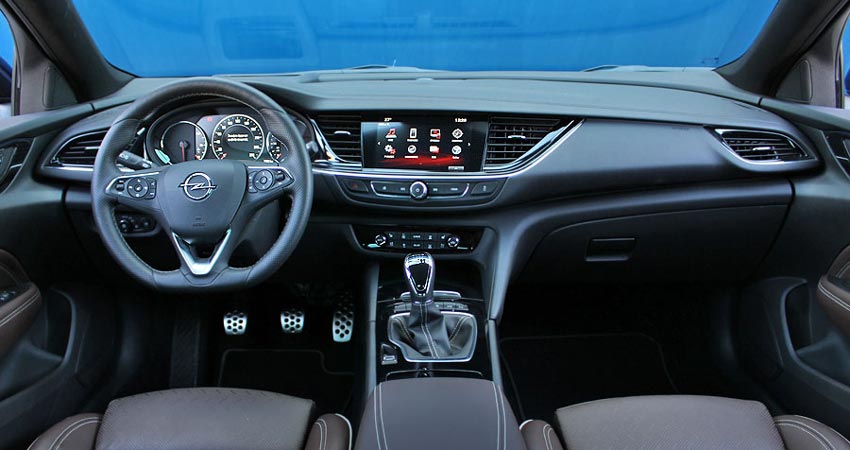 Όπως είναι λογικό οι αλλαγές δεν έμειναν στο αμάξωμα και συνεχίστηκαν και στο εσωτερικό. Εκεί οι σχεδιαστές της Opel φρόντισαν ώστε να είναι πιο μοντέρνο σχεδιαστικά, προηγμένο τεχνολογικά, ποιοτικό και ευρύχωρο. Το εσωτερικό του νέου Insignia Grand Sport, ακολουθεί το σχεδιαστικό προφίλ των νέων μοντέλων της μάρκας και διαθέτει σημαντικά βελτιωμένη εργονομία. Το ταμπλό διακρίνεται από τις μεγάλες επίπεδες επιφάνειες, τις απαλές καμπύλες, το μικρότερο τιμόνι και τα σημαντικά λιγότερα χειριστήρια στην κεντρική κονσόλα. Πολλές λειτουργίες ελέγχονται μέσω της στάνταρ οθόνης αφής των 8 ιντσών του συστήματος πολυμέσων, το οποίο περιλαμβάνει -μεταξύ άλλων- και 4G/LTE Wi-Fi Hot spot. Επιπλέον, στην έγχρωμη οθόνη των 4,2 ιντσών στον πίνακα οργάνων προβάλλονται διάφορες χρήσιμες πληροφορίες, ενώ με πολύ καλή ευκρίνεια απεικονίζονται στο εμπρός παρμπρίζ διάφορες ενδείξεις μέσω του προαιρετικού head-up display. Πολλά είναι και τα συστήματα υποστήριξης του οδηγού, όπως η αναγνώριση επικείμενης σύγκρουσης με αυτόματη ενεργοποίηση πέδησης έκτακτης ανάγκης, η αναγνώριση σημάτων κυκλοφορίας, η υποβοήθηση διατήρησης πορείας και η προειδοποίηση σύγκρουσης εμπρός.