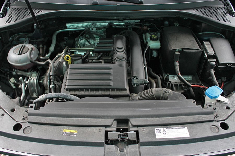 O 1.400άρης turbo άμεσου ψεκασμού κινητήρας βενζίνης ισχύος 125 ίππων και με ροπή 200 Nm από τις 1.400 σ.α.λ. παρουσιάζει πολύ καλά χαρακτηριστικά λειτουργίας στο σύνολό του και ταιριάζει κατάλληλα στο αμάξωμα του Tiguan. Τις πρώτες εντυπώσεις κερδίζει η ιδιαίτερα πολιτισμένη λειτουργία του μοτέρ με το χαμηλό θόρυβο και τη πλήρη έλλειψη κραδασμών. Παράλληλα, το θετικό τράβηγμα που διαθέτει από τις χαμηλές στροφές χάρη στη διαθέσιμη ροπή, δίνει τη δυνατότητα στον οδηγό να κινείται άνετα στην πόλη χωρίς να ξεπερνά τις 2.000 σ.α.λ., επιτυγχάνοντας έτσι χαμηλή κατανάλωση. Επιπλέον, ο 1.4 TSI 125 PS διακρίνεται για τη γραμμική απόδοσή του, την προθυμία του να ανεβάζει στροφές και τις σβέλτες επιδόσεις που προσφέρει από στάση (0-100 χλμ./ώρα σε 10,5 δλ.) και εν κινήσει (80-120 χλμ./ώρα με 4η/5η ταχύτητα σε 9,0/13,0 δλ. αντίστοιχα), σε συνδυασμό με το εύχρηστο 6τάχυτο κιβώτιο. Πολύ λογική είναι και η κατανάλωση, η οποία κατά τη διάρκεια της δοκιμής βρέθηκε στα 7,0 λτ./100 χλμ.