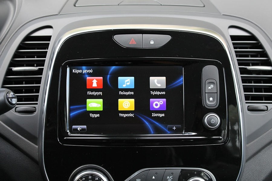 Σημείο βεβαίως που ξεχωρίζει στο εσωτερικό η οθόνη των συστημάτων ψυχαγωγίας. Η Renault ανάλογα με την έκδοση προσφέρει τρία μοντέλα (R&GO, Media Nav Evolution και Renault R-LINK Evolution. Το τελευταίο που είχαμε και στο Captur της δοκιμής διαθέτει έγχρωμη οθόνη αφής 7 ιντσών με ραδιόφωνο, μουσική, τηλεφωνία, Bluetooth, φωνητικό έλεγχο, σύστημα πλοήγησης TomTom, χρήση των αρχείων multimedia του τηλεφώνου, Android Auto καθώς και έναν κατάλογο από εφαρμογές που μπορούν να ληφθούν από το R-LINK Store.