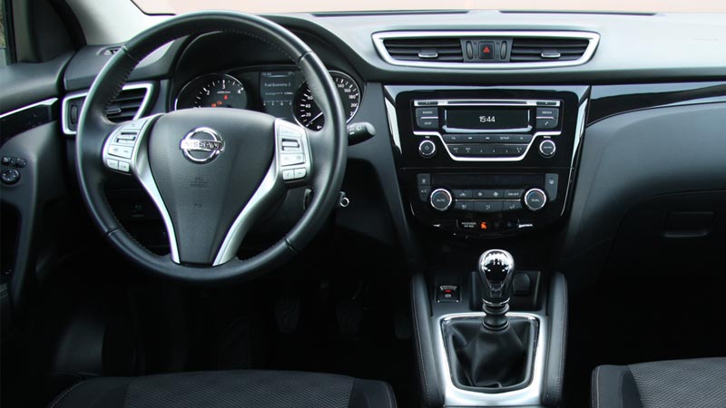 Στο εσωτερικό του Qashqai η απτή ποιότητα είναι προσεγμένη και αναβαθμίζεται σημαντικά από την ευρεία χρήση παχιού αφρώδους υλικού σε όλη την επιφάνεια του ταμπλό, τόσο στο πάνω μέρος του όσο και πιο χαμηλά. Κάποιες μικρές ατέλειες στην συναρμογή δεν απουσιάζουν, όπως και τριγμοί που ακούστηκαν από το αυτοκίνητο της δοκιμής. Η εργονομία είναι καλή με τον οδηγό να κάθεται ψηλά και άνετα στο αναπαυτικό κάθισμα. Οι χώροι είναι σε θέση να καλύψουν με άνεση τις μεταφορικές ανάγκες 4 ή και 5 επιβατών χωρίς ιδιαίτερες παραχωρήσεις από μέρους τους. O χώρος αποσκευών με το διπλό δάπεδο που ενισχύει την πρακτικότητα έχει χωρητικότητα 430 λίτρα.