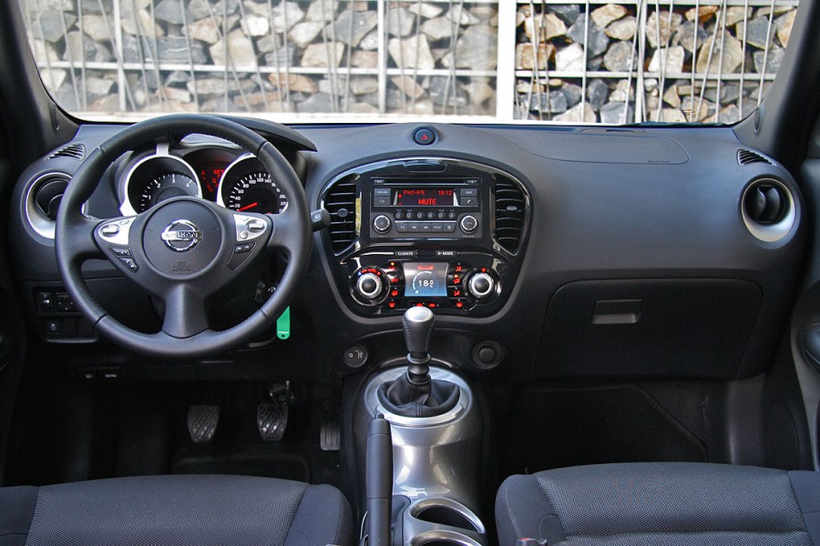Η εικόνα στο εσωτερικό του πετρελαιοκίνητου Juke δεν αλλάζει παραμένοντας σύγχρονο με έντονα νεανικό διάκοσμο και με καλή ποιότητα κατασκευής παρά την αποκλειστική χρήση σκληρών υλικών. Η θέση οδήγησης είναι επίσης πολύ καλή παρά το γεγονός ότι τι τιμόνι δε διαθέτει τηλεσκοπική ρύθμιση, με τον οδηγό να κάθεται ψηλά και να έχει σε σωστή θέση τα χειριστήρια. Αρνητικό του στοιχείο αποτελεί η κακή ορατότητα περιφερειακά και οι ατέλειες στο φινίρισμα. Οι χώροι δεν συγκαταλέγονται στα δυνατά σημεία του Juke αφού ο αέρας για τα κεφάλια των πίσω επιβατών είναι περιορισμένος, όπως και ο ρηχός χώρος αποσκευών με 251 λίτρα χωρητικότητας.