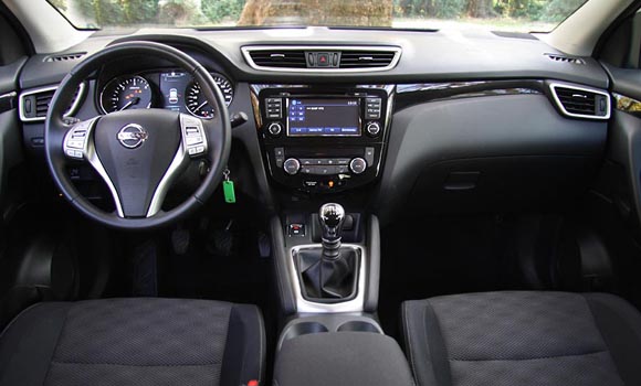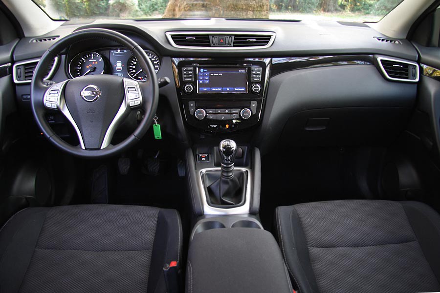 Σημαντικά εκσυγχρονισμένο είναι το Qashqai και στο εσωτερικό του με την εικόνα να δίνει την εντύπωση ενός ακριβότερου και ανώτερης κατηγορίας αυτοκινήτου. Η ποιότητα είναι και εκείνη βελτιωμένη όσον αφορά στα υλικά, ωστόσο παρατηρούνται μερικές ατέλειες στην συναρμογή σε κάποια «κρυφά» σημεία. Το ταμπλό είναι ογκώδες και δημιουργεί μια αίσθηση ευρυχωρίας με κύρια χαρακτηριστικά του την 7 ιντσών κεντρικά τοποθετημένη οθόνη αφής, που διαχειρίζεται πληθώρα λειτουργιών του συστήματος NissanConnect, καθώς και τον ευμεγέθη πίνακα οργάνων. Η εργονομία είναι καλή με τον οδηγό να κάθεται ψηλά και άνετα, όμως η ορατότητα είναι περιορισμένη προς όλες τις κατευθύνσεις κάτι που οφείλεται στην σχεδίαση του αμαξώματος. Οι χώροι είναι καλύτεροι σε σχέση με την προηγούμενη γενιά του Qashqai και εξυπηρετούν με άνεση τις μεταφορικές ανάγκες 4 ή και 5 επιβατών χωρίς ιδιαίτερες παραχωρήσεις από μέρους τους. O χώρος αποσκευών με το διπλό δάπεδο που ενισχύει την πρακτικότητα έχει μεγαλώσει κατά 20 λίτρα φτάνοντας έτσι τα 430 λίτρα.