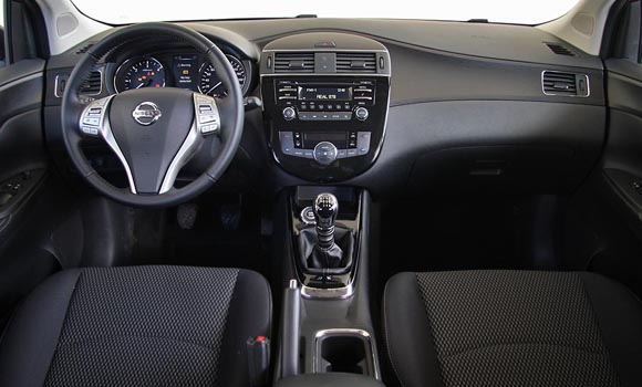 Στo εσωτερικό του το Nissan Pulsar είναι ευχάριστο σχεδιαστικά και καλοφτιαγμένο με τη χρήση μαλακού πλαστικού στο πάνω μέρος του ταμπλό και το καλό φινίρισμα, ωστόσο η συναρμογή ορισμένων τμημάτων εκτός ταμπλό παρουσιάζει ατέλειες. Ο πίνακας οργάνων παραπέμπει στο Qashqai ενώ η κεντρική κονσόλα που ξεχωρίζει από το ταμπλό θυμίζει ελαφρώς εκείνη του Renault Clio και σε κάθε περίπτωση κρίνεται θετικά τόσο αισθητικά όσο και λειτουργικά ενσωματώνοντας και το σύστημα NissanConnect. Ένα από τα δυνατά σημεία του Pulsar αποτελούν οι χώροι στο εσωτερικό του αφού με μεταξόνιο 2,7 μ. καλύπτει με περίσσια ευκολία τις ανάγκες 4 ή και 5 επιβατών, οι οποίοι έχουν στη διάθεσή τους άφθονο χώρο για τα πόδια πίσω. Αντίστοιχα επαρκής είναι και ο χώρος αποσκευών με όγκο 385 λίτρων και πλήρως εκμεταλλεύσιμο σχήμα.