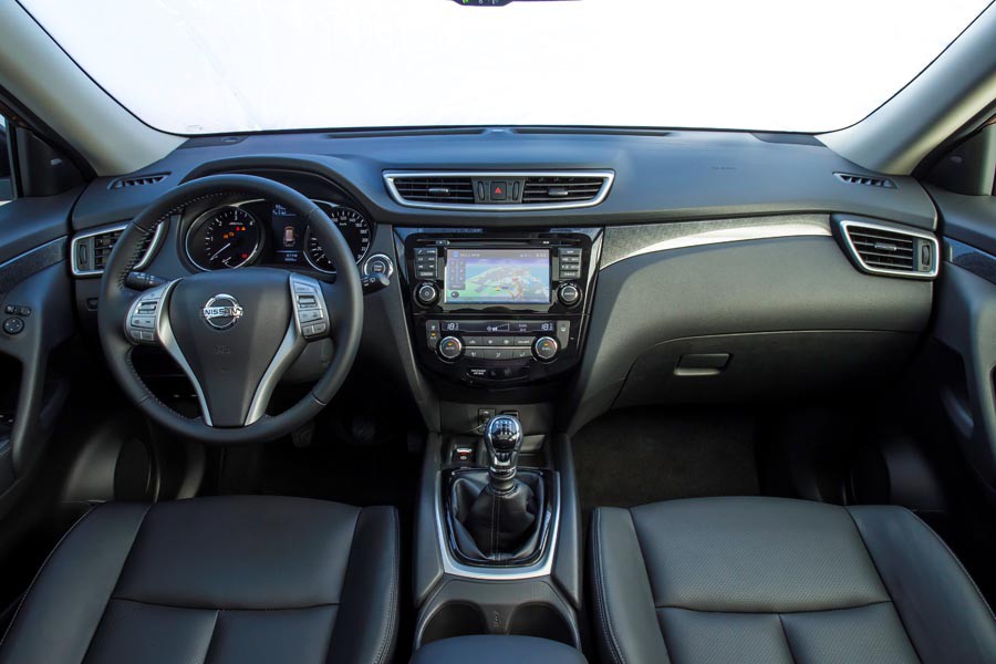 Το εσωτερικό του νέου X-Trail είναι ίδιο με εκείνο του Qashqai τόσο σε σχεδίαση όσο και σε ποιότητα. Το ταμπλό είναι σχετικά ογκώδες με κύρια χαρακτηριστικά του την 7 ιντσών κεντρικά τοποθετημένη οθόνη αφής, που διαχειρίζεται πληθώρα λειτουργιών του συστήματος NissanConnect, καθώς και τον ευμεγέθη πίνακα οργάνων. Η εργονομία είναι καλή με τον οδηγό να κάθεται ψηλά και άνετα. Την ποιότητα ενισχύουν τα μαλακά υλικά που υπάρχουν στο πάνω μέρος του ταμπλό, στην κονσόλα και στις πόρτες, ωστόσο η συναρμογή ορισμένων επιφανειών (π.χ. τα ένθετα τύπου carbon στο ταμπλό) παρουσιάζει μικροατέλειες. Σε επίπεδο διαθέσιμων χώρων, το νέο X-Trail είναι σε θέση να μετακινήσει με περίσσιες ανέσεις 5 ενήλικα άτομα. Στην 7θέσια έκδοση της δοκιμής τα δύο επιπλέον αναδιπλούμενα καθίσματα που αποθηκεύονται στο δάπεδο του πορτμπαγκάζ προορίζονται για κοντινές μετακινήσεις και κυρίως παιδιά. Ο χώρος αποσκευών είναι μεγάλος με χωρητικότητα 550 λίτρων και μειώνεται στα 135 λίτρα στην 7θέσια διάταξη.