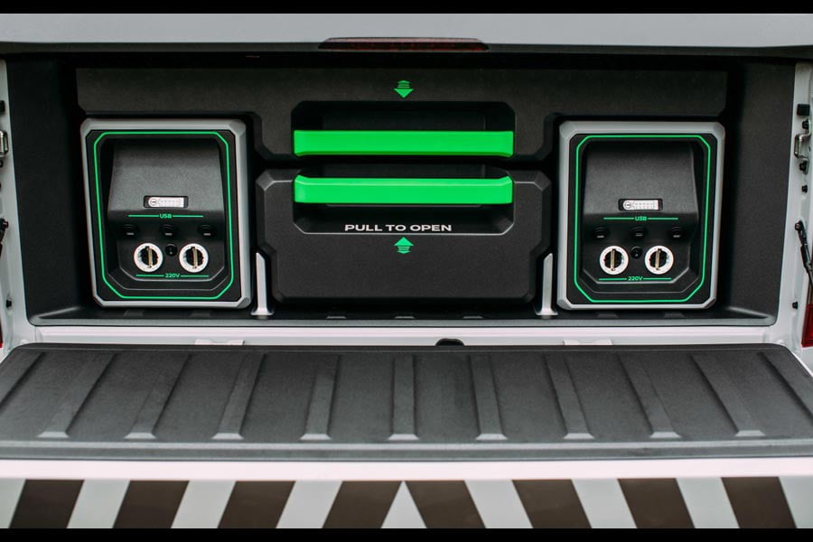Παράλληλα σηματοδοτεί την παγκόσμια πρεμιέρα ενός πρωτότυπου πακέτου φορητής μπαταρίας, που σχεδιάστηκε και αναπτύχθηκε από τη Nissan και χρησιμοποιεί μπαταρίες που προέρχονται από τα ηλεκτρικά οχήματα LEAF και e-NV200 της μάρκας. Κάθε συστοιχία έχει απόδοση 2kW και χρησιμοποιεί επτά μονάδες μπαταρίων που φορτίζουν από την ενέργεια του 2.3 λτ. twin-turbo diesel κινητήρα των 190 ίππων. Είναι τοποθετημένες στον χώρο φόρτωσης του Navara και προστατεύονται από ένα αδιάβροχο αλουμινένιο περίβλημα. Σε κάθε μπαταρία είναι ενσωματωμένες δύο πρίζες εισόδου και πέντε εξόδου, ενώ μπορούν να χρησιμοποιηθούν ακόμα και για την λειτουργία βαρέων εργαλείων.