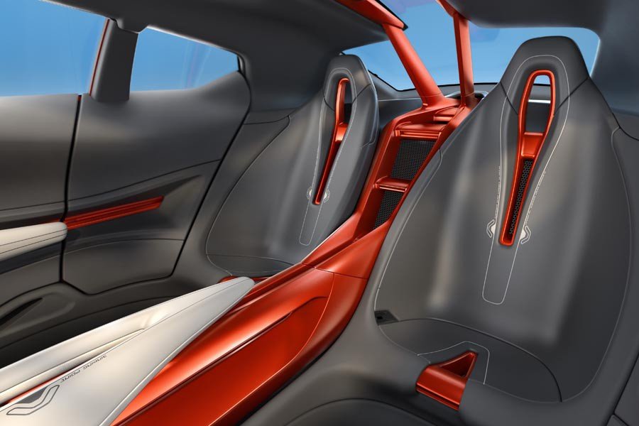 Με εντυπωσιακό τρόπο γίνεται η είσοδος στο εσωτερικό, αφού οι μπροστινές πόρτες ανοίγουν προς τα πάνω, όπως σε πολλά supercars και οι μικρότερες πίσω σε αντίθετη φορά. Στην 4θέσια καμπίνα με το μινιμάλ και σπορ ταμπλό, κυριαρχούν το σπορ λεπτό τιμόνι, ο πίνακας οργάνων που θυμίζει χρονογράφο ρολογιού, η οθόνη στο πάνω μέρος του ταμπλό και η κονσόλα που φτάνει μέχρι το πίσω μέρος.