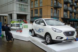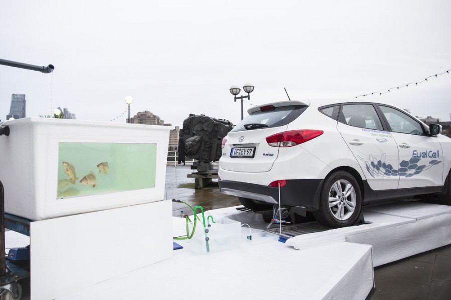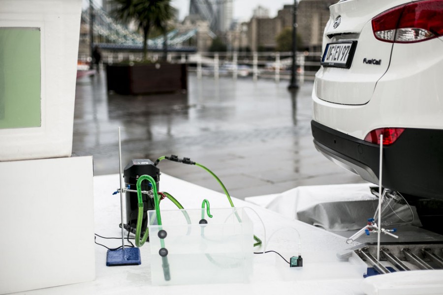 Το πρώτο στον κόσμο αυτοκίνητο με κυψέλες καυσίμου υδρογόνου, το Hyundai ix35 Fuel Cell χρησιμοποιήθηκε για να μεγαλώσει ένα μικρό οικοσύστημα από τους υδρατμούς που εκπέμπονται από την εξάτμισή του κατά την καύση του υδρογόνου. Το πρωτότυπο αυτό εγχείρημα της Fuel Cell Farm βρέθηκε για μία μόνο μέρα έξω από το Design Museum του Λονδίνου και το ασυνήθιστο αυτό θέαμα τραβούσε την περιέργεια των επισκεπτών. Οι υδρατμοί νερού που εκπέμπονται από την εξάτμιση του Hyundai ix35 Fuel χρησιμοποιήθηκαν για την καλλιέργεια φυτών σε νερό (υδροπονία) και την ανατροφή ψαριών σε δεξαμενές (υδατοκαλλιέργεια), τα οποία κατόπιν καταναλώθηκαν. Με αυτό τον τρόπο η Hyundai θέλει να δείξει την ιδιαίτερα φιλική προς το περιβάλλον τεχνολογία των κυψελών καυσίμου υδρογόνου, αφού δεν εκπέμπονται ρύποι που επιβαρύνουν το περιβάλλον, παρά μόνο νερό.