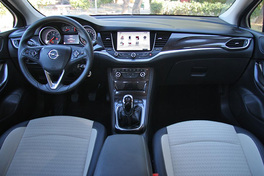Όπως έχουμε γράψει και στο παρελθόν, κατά τη δοκιμή της πετρελαιοκίνητης έκδοσης την οποία μπορείτε να δείτε εδώ, το εσωτερικό του νέου Opel Astra είναι σημαντικά αναβαθμισμένο, σε σχέση με αυτό της προηγούμενης γενιάς, με καλύτερη εργονομία και με περισσότερους χώρους. Το ταμπλό αποπνέει συμπαγή αίσθηση, κάτι που ενισχύεται από την χρήση μαλακού υλικού και την προσεγμένη συναρμογή και φινίρισμα. Η κονσόλα του προγενέστερου Astra με τα πολλά χειριστήρια, αντικαταστάθηκε από μια σύγχρονη, με πολύ πιο λίγα μπουτόν αφού πλέον η οθόνη αφής των 7 ιντσών του συστήματος πολυμέσων IntelliLink, αντικαθιστά πολλές λειτουργίες. Στα μείον η έλλειψη χώρου για μικροαντικείμενα στην κονσόλα. Η θέση οδήγησης είναι πολύ καλή, με τον οδηγό να έχει στη διάθεσή του πολλαπλές ρυθμίσεις και σε μεγάλο εύρος για το κάθισμα και το τιμόνι. Βελτιωμένοι παρουσιάζονται οι χώροι για τους πίσω επιβάτες, όπου υπάρχει αρκετός αέρας για τα γόνατα, διαθέσιμο πλάτος και ύψος. Ο χώρος των αποσκευών δεν άλλαξε και παρέμεινε στα 370 λίτρα, ενώ κάτω από το δάπεδό του υπάρχουν πολλές θήκες για τον πυροσβεστήρα, φαρμακείο κ.λπ. Με την αναδίπλωση της πλάτης των πίσω καθισμάτων (σε αναλογία 60:40), η χωρητικότητά του αυξάνεται στα 1.210 λτ. και το δάπεδο παραμένει επίπεδο.