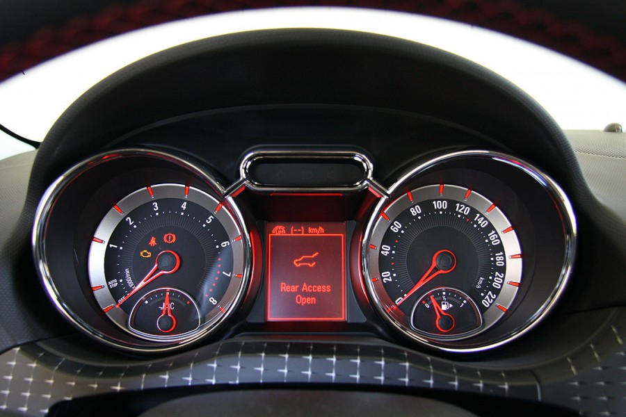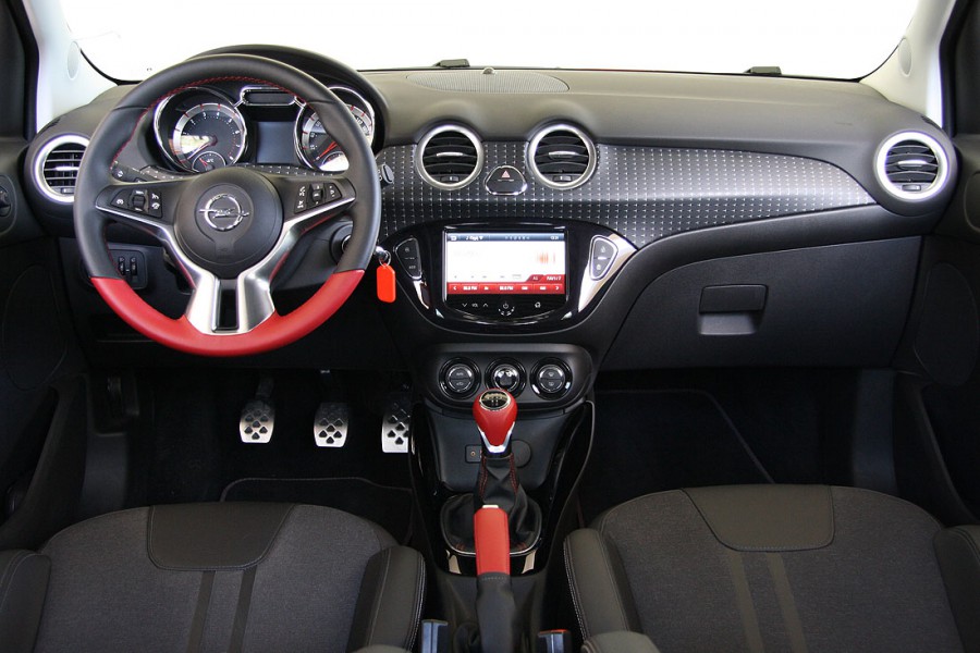 Ακόμα πιο ενδιαφέρον είναι το ADAM στο εσωτερικό του, με την εικόνα να είναι ιδιαίτερα ευχάριστη τόσο μέσω των χρωμάτων όσο και της αισθητικής των χειριστηρίων-διακοπτών, του τιμονιού, του πίνακα οργάνων και της κεντρικής κονσόλας. Το ADAM εκπλήσσει ευχάριστα και ποιοτικά, δείχνοντας άμεσα ότι είναι καλοφτιαγμένο και προσεγμένο με το μαλακό πλαστικό στο ταμπλό. Η εργονομία είναι καλή και ο οδηγός έχει καλή ορατότητα προς όλες τις κατευθύνσεις. Στα μείον το μεγάλης διαμέτρου τιμόνι και η κακή θέση των θέσεων για μπουκάλια και αναψυκτικά. Οι χώροι για τους πίσω επιβάτες είναι μικροί και θα χρειαστεί να κάνουν παραχωρήσεις άτομα ακόμα και μέσου ύψους κάτι που εκτός από τις μικρές διαστάσεις οφείλεται και στην όρθια θέση των πίσω καθισμάτων. Ο χώρος αποσκευών έχει μικρό άνοιγμα και χωρητικότητα μόλις 170 λίτρων.