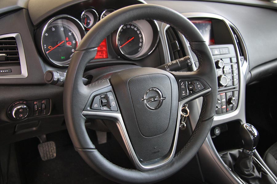 Το εσωτερικό του Opel Astra κερδίζει τις πρώτες εντυπώσεις με το μοντέρνο σχεδιασμό του και τα σπορτίφ χαρακτηριστικά του. Από πλευράς ποιότητας, ένα τμήμα του ταμπλό είναι επενδυμένο με λεπτό μαλακό υλικό, αντί του πιο παχιού αφρώδους που συναντάται σε ανταγωνιστικά μοντέλα. Επίσης, δε λείπουν μικρές αστοχίες στη συναρμογή μεταξύ διαφόρων τμημάτων, αν και έχει σημειωθεί βελτίωση σε σχέση με τα πρώτα Astra αυτής της γενιάς. Ο οδηγός κάθεται σωστά και έχει στη διάθεσή του όλες τις ρυθμίσεις για κάθισμα και τιμόνι. Ωστόσο δε λαμβάνει καλή ορατότητα προς τα πίσω, ενώ μέτρια είναι η εργονομία της κεντρικής κονσόλας με τα πάρα πολλά χειριστήρια. Κανένα παράπονο δεν υπάρχει όσον αφορά στον αριθμό και μέγεθος θηκών και θέσεων για ποτήρια ή μικρά μπουκάλια. Στον τομέα των χώρων, το Astra 5d είναι σε θέση να φιλοξενήσει χωρίς παραχωρήσεις δύο ενήλικα άτομα στο πίσω τμήμα ή και λίγο στριμωγμένα ένα τρίτο, ενώ πλήρως εκμεταλλεύσιμο και με ικανοποιητική χωρητικότητα είναι το πορτ μπαγκάζ των 370 λίτρων.