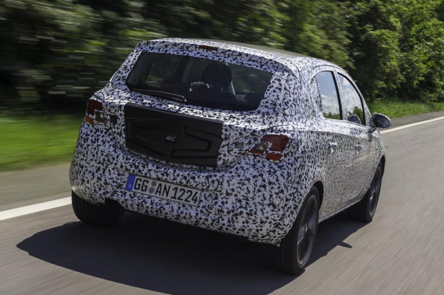 Η Opel αποκαλύπτει για πρώτη φορά το νέο Corsa πέμπτης γενιάς (Corsa E) μέσω φωτογραφιών και video από τις δοκιμές που γίνονται στα καμουφλαρισμένα αυτοκίνητα, ενώ ανακοινώνει και ορισμένα τεχνικά στοιχεία. Εξωτερικά και παρά το βαρύ καμουφλάζ διακρίνονται κάποια βασικά σχεδιαστικά του γνωρίσματα, όπως είναι τα πιο αιχμηρά φωτιστικά σώματα, η μεγαλύτερη και πιο χαμηλά τοποθετημένη μάσκα στα πρότυπα του ADAM, τα πιο έντονα νεύρα στα πλαϊνά στο ύψος των ώμων, η χαρακτηριστική «λεπίδα» χαμηλά στις πόρτες, τα ανασχεδιασμένα πίσω φωτιστικά σώματα και ο προφυλακτήρας. Το εσωτερικό είναι πλήρως καμουφλαρισμένο, ωστόσο από άλλες φωτογραφίες που έχουν διαρρεύσει στο διαδίκτυο, έχουν δείξει ότι θα είναι πανομοιότυπο με εκείνο του ADAM.