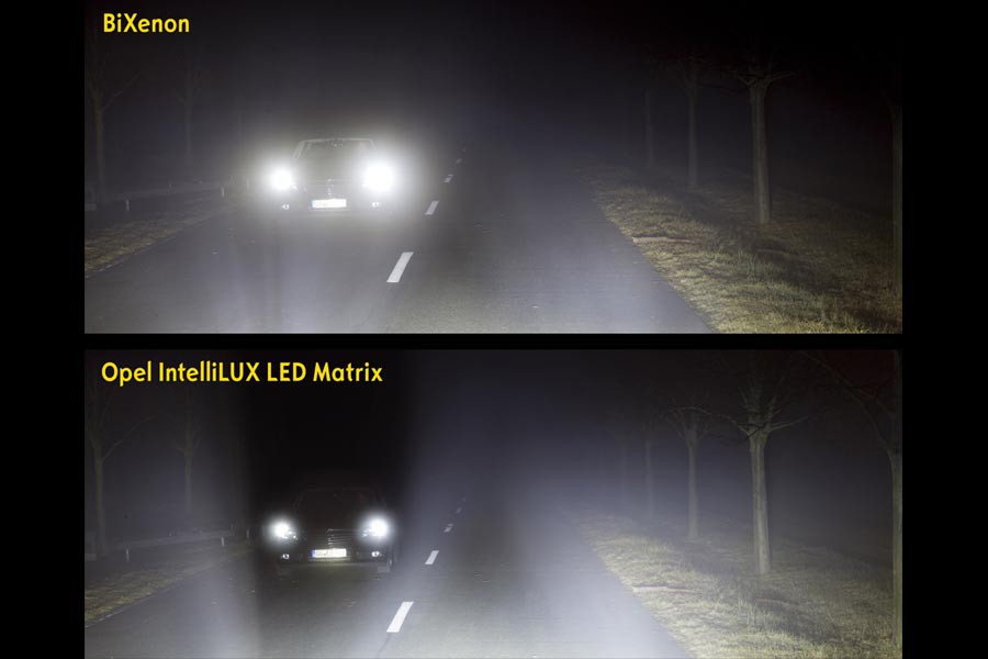 Αποτελούμενα από 16 τμήματα LED – οκτώ σε κάθε πλευρά του οχήματος – το νέο σύστημα LED matrix προσαρμόζει αυτόματα και συνεχώς το μήκος και την κατανομή της δέσμης φωτός σύμφωνα με τις συνθήκες κυκλοφορίας. Στην πορεία, συνεργάζεται με την εμπρός κάμερα Opel Eye η οποία, για παράδειγμα, ανιχνεύει την παρουσία άλλων κινούμενων οχημάτων, ώστε τα τμήματα LED που πιθανόν θα «τύφλωναν» τους αντίθετα ερχόμενους οδηγούς απενεργοποιούνται και ενεργοποιούνται αυτόματα.