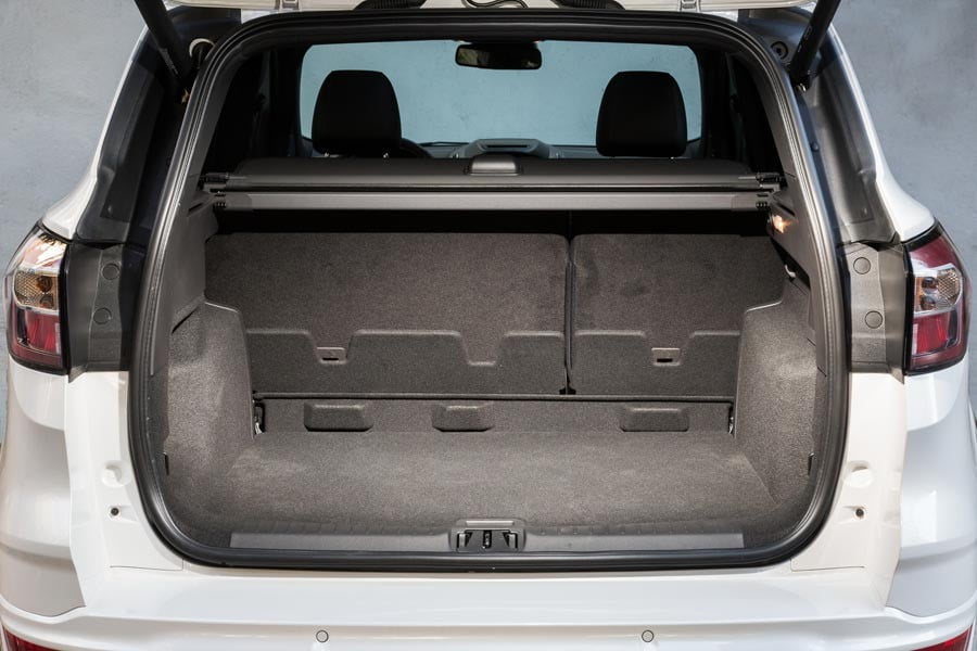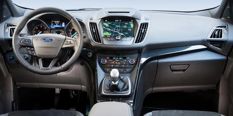 Στο θάλαμο των επιβατών του ανανεωμένου Kuga η Ford έδωσε έμφαση στη βελτίωση της λειτουργικότητας, της εργονομίας, αλλά και την ενίσχυση των τεχνολογικών στοιχείων του αυτοκινήτου. Έτσι, με την πρώτη ματιά ξεχωρίζει το νέο τιμόνι που περιλαμβάνει πιο εύχρηστα πλήκτρα χειρισμού, ενώ παράλληλα η Ford έχει προσθέσει και το νέας γενιάς σύστημα πολυμέσων SYNC 3, με εντελώς καινούργιο λειτουργικό που διευκολύνει τη χρήση μέσω και της μεγάλης οθόνης αφής στην κεντρική κονσόλα. Επιπλέον, το SYNC 3 έρχεται και με στάνταρ σκληρό δίσκο χωρητικότητας 64 GB, ενώ σημαντικό στοιχείο αποτελεί και το γεγονός ότι στο βασικό εξοπλισμό όλων των Kuga υπάρχει το σύστημα πλοήγησης. Συνεχίζοντας με τα νέα στοιχεία στο εσωτερικό, διακρίνουμε τα καινούργια και πιο εύχρηστα χειριστήρια για τον κλιματισμό, αλλά και το νέο ηλεκτρικό χειρόφρενο, που αφήνει περισσότερο χώρο για μικροαντικείμενα στο τούνελ της κονσόλας. Ποιοτικά, τα υλικά παραμένουν στα ίδια πολύ καλά επίπεδα που γνωρίζαμε, με άφθονο μαλακό πλαστικό στο ταμπλό και το εσωτερικό των θυρών. Στους χώρους, το Kuga φιλοξενεί και πάλι 5 ενήλικες επιβάτες χωρίς παραχωρήσεις, με πορτ-μπαγκάζ που έχει πολύ καλή χωρητικότητα 456 λίτρων και μεγάλο άνοιγμα για εύκολη φόρτωση (μπορεί να παραγγελθεί και με ηλεκτρική πόρτα).