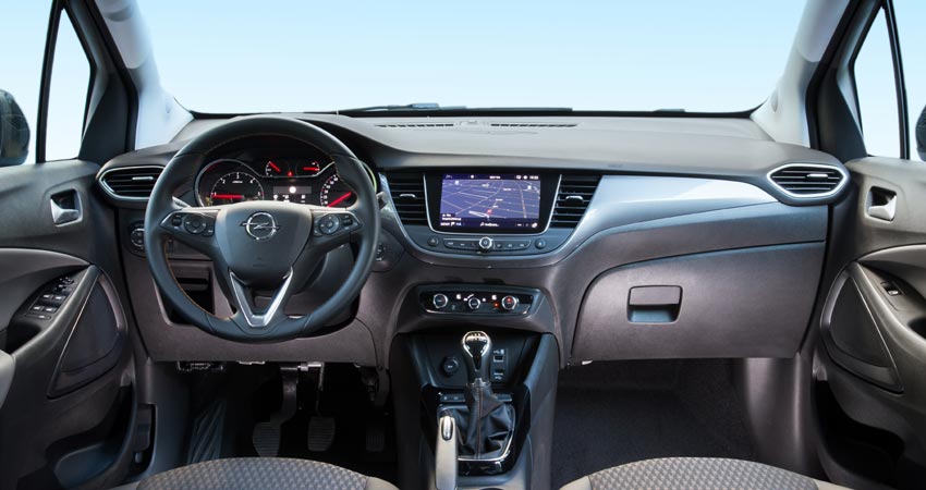 Μπαίνοντας στο εσωτερικό του νέου Opel Crossland X η σχεδίαση ακολουθεί τη νεότερη αισθητική φιλοσοφία των μοντέλων της γερμανικής εταιρείας, σε ένα ταμπλό όπου ξεχωρίζει η παρουσία της έγχρωμης οθόνης αφής των 8 ιντσών (στάνταρ 7 ιντσών) του συστήματος πολυμέσων. Παράλληλα, τονισμένη είναι και η πρακτικότητα, τόσο λόγω των αρκετών θηκών για μικροαντικείμενα, όσο και της δυνατότητας εφοδιασμού του Crossland X με συρόμενο κατά 150 χλστ. και διαιρούμενο (40/60) πίσω κάθισμα. Το κάθισμα αυτό εφόσον τραβηχτεί μπροστά αυξάνει την έτσι κι αλλιώς μεγάλη για τα δεδομένα της κατηγορίας χωρητικότητα των 410 λίτρων του πορτ-μπαγκάζ στα 520 λίτρα, ενώ με αναδιπλωμένα τα πίσω καθίσματα η χωρητικότητα αυτή φθάνει τα 1.255 λίτρα. Πολύ καλές εντυπώσεις μας άφησε το Crossland X και με τους χώρους για τους επιβάτες του, αφού 4 ενήλικες θα μεταφερθούν με άνεση στο εσωτερικό, ακόμη και εάν αυτοί ξεπερνούν τον μέσο όρο ύψους. Σε ό,τι αφορά τέλος στο ποιοτικό κομμάτι, η συνολική συναρμογή και το φινίρισμα κρίνονται παραπάνω από ικανοποιητικά, με το ταμπλό να συνδυάζει στο πάνω τμήμα του μαλακό πλαστικό και στο υπόλοιπο, σκληρά στην αφή υλικά.