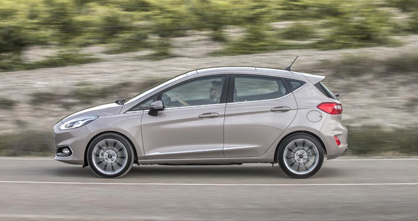 Το Fiesta στην 8η του γενιά του άλλαξε εντελώς το ρουν της σχεδίασής του, αφού πλέον εφαρμόζει γραμμές πιο ώριμες και λιγότερο επιθετικές από πριν, σε μια προσπάθεια της Ford να απευθυνθεί σε ένα ευρύτερο κοινό. Παράλληλα, το αυτοκίνητο έχει μεγαλώσει σε όλες τις διαστάσεις του, εκφράζοντας ακόμη πιο έντονα αυτή την ωριμότητά του. Ωστόσο, για αυτούς που αναζητούν πιο δυναμικά χαρακτηριστικά και μέχρι την έλευση του πιο σπορ νέου Fiesta ST (διαβάστε περισσότερα εδώ), η έκδοση ST-Line έρχεται να τους ικανοποιήσει απόλυτα αναφορικά με το αισθητικό κομμάτι, αφού ενισχύει το αμάξωμα του Fiesta με μια νέα εμπρόσθια γρίλια, πιο δυναμικούς προφυλακτήρες, πλαϊνές ποδιές, πίσω αεροτομή και ειδικής σχεδίασης ζάντες αλουμινίου. Στην περίπτωση του Fiesta Vignale, εμφανισιακά η νέα αυτή έκδοση προβάλει τον πολυτελή της χαρακτήρα έχοντας μια κυψελλοειδή χρωμιωμένη εμπρόσθια γρίλια, ειδικής σχεδίασης θέσεις για τους προβολείς ομίχλης επίσης με χρώμιο, πλαϊνή χρωμιωμένη λωρίδα, πίσω διαχύτη, αλλά και ζάντες 18 ιντσών με πολυτελές σχέδιο.