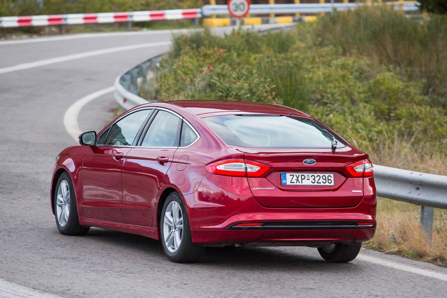 Στα βασικά πλεονεκτήματα που προσφέρει το νέο Mondeo είναι ο άριστος συνδυασμός μεταξύ άνεσης και οδικής συμπεριφοράς. Μπορεί τα 4,9 μήκους του αμαξώματος να σε κάνουν να νιώθεις άβολα στην πόλη, ωστόσο εκτός αυτής ξεδιπλώνει τον ταξιδιάρικο χαρακτήρα του, τόσο στις μεγάλες ευθείες και καμπές της εθνικής οδού όσο και στους επαρχιακούς δρόμους με συνεχόμενες στροφές. Κινούμενοι για αρκετά χιλιόμετρα σε υψηλές ταχύτητες δε νιώσαμε ούτε στιγμή την παραμικρή τάση ανασφάλειας, ενώ απολαμβάναμε το ταξίδι ξεκούραστα. Παρά τον μεγάλο του όγκο, το νέο Mondeo εκπλήσσει και σε αυτή τη γενιά με τον τρόπο που στρίβει, αφού καταφέρνει και δείχνει μικρότερο, παραμένοντας ακλόνητο ακόμα και σε πιεσμένους ρυθμούς. Την ίδια στιγμή ο οδηγός λαμβάνει πολύ καλή αίσθηση από το τιμόνι, το πλαίσιο και τις σωστά ρυθμισμένες, ανεξάρτητες αναρτήσεις.