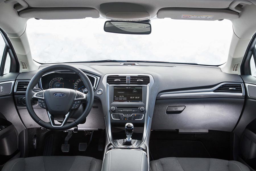Το πληθωρικών διαστάσεων νέο μεσαίο Ford μήκους 4.871 χλστ., πλάτους 1.852 χλστ., ύψους 1.482 χλστ. και μεταξόνιο 2.850 χλστ., είναι το πιο ελκυστικό σχεδιαστικά Mondeo από ποτέ, με σπορτίφ και δυναμικό εμπρός άκρο, σφηνοειδές προφίλ και τελείωμα που παραπέμπει σε 4θυρο κουπέ. Μεταξύ των χαρακτηριστικών του γνωρισμάτων είναι οι εμπρός προσαρμοζόμενοι προβολείς Adaptive LED (εκτός της έκδοσης Trend) με αυτόματη ρύθμιση ύψους, κατευθυνόμενη δέσμη και επτά συνολικά ρυθμίσεις, ανάλογα με την ταχύτητα του αυτοκινήτου, τις συνθήκες φωτισμού περιβάλλοντος, τη γωνία διεύθυνσης την απόσταση από το προπορευόμενο όχημα και την ενεργοποίηση των καθαριστήρων παρμπρίζ. Πρωτοποριακές είναι με την σειρά τους και οι πίσω ακριανές ζώνες ασφαλείας τεχνολογίας Inflatable Rear Seatbelt με ενσωματωμένο αερόσακο, καθώς και το σύστημα ανίχνευσης πεζών Pre-Collision Assist με Pedestrian Detection, που ακινητοποιεί το όχημα αν διαγνώσει πιθανή σύγκρουση.