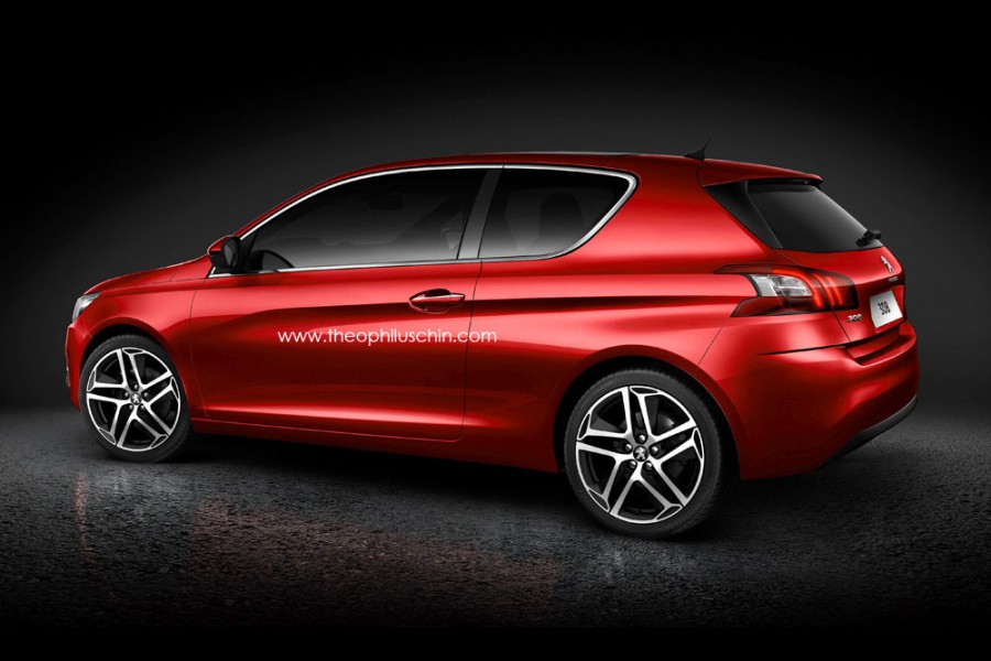 Εκεί, οι μεσαίες κολόνες θα μετακινηθούν πιο πίσω (όπως άλλοτε συνηθίζεται στα 3θυρα μοντέλα σε σχέση με τα αντίστοιχα 5θυρα), τα νεύρα που διατρέχουν το αμάξωμα θα φαίνονται πιο τονισμένα λόγω της απουσίας των πίσω θυρών και τα πίσω παράθυρα θα σχηματίζουν πιο αμβλεία γωνία, προσθέτοντας πιο σπορτίφ χαρακτήρα στο αυτοκίνητο. Στο 3θυρο 308 θα βασιστεί και η κορυφαία έκδοση GTi, η οποία θα τροφοδοτείται με τον turbo 1.6 THP κινητήρα με απόδοση που μπορεί να φτάσει ακόμα και τους 260 ίππους (βλ. Peugeot RCZ R).