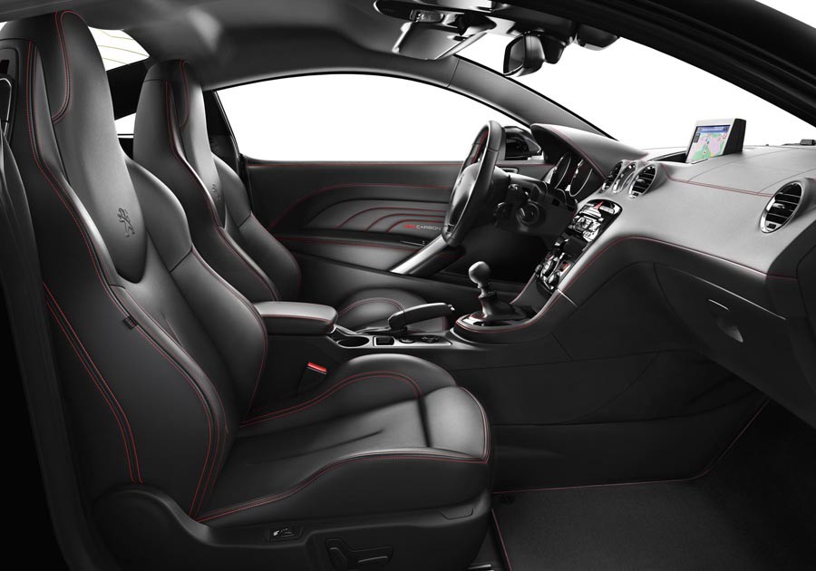 Στο εσωτερικό του Peugeot RCZ Red Carbon όλες οι επιφάνειες (ταμπλό, καθίσματα, επενδύσεις θυρών, τιμόνι, επιλογέας ταχυτήτων) καλύπτονται με μαύρο δέρμα και κόκκινες ραφές, ενώ στον εξοπλισμό προστίθεται το σύστημα πλοήγησης και πολυμέσων.