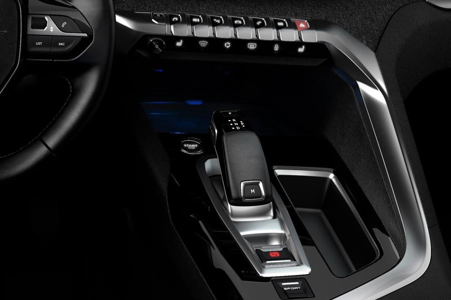 Εντύπωση προκαλούν τα λιγοστά χειριστήρια προς όφελος της εργονομίας, όπως επίσης και οι αεροπορικού τύπου διακόπτες στο μέσο της κεντρικής κονσόλας, για τον έλεγχο του κλιματιστικού, τα θερμαινόμενα καθίσματα, το κλείδωμα των θυρών και τα αλάρμ. Στην πλατιά βάση της κονσόλας υπάρχει ο διακόπτης Start-Stop του κινητήρα, ο επιλογέας του αυτόματου κιβωτίου ταχυτήτων, το ηλεκτρικό χειρόφρενο και ο διακόπτης Sport, ενώ πιο πίσω υπάρχουν δύο ποτηροθήκες. Επιπλέον, η Peugeot αναφέρει ότι τα καθίσματα είναι ιδιαίτερα αναπαυτικά και το ταμπλό είναι κατασκευασμένο από υψηλής ποιότητας υλικά.
