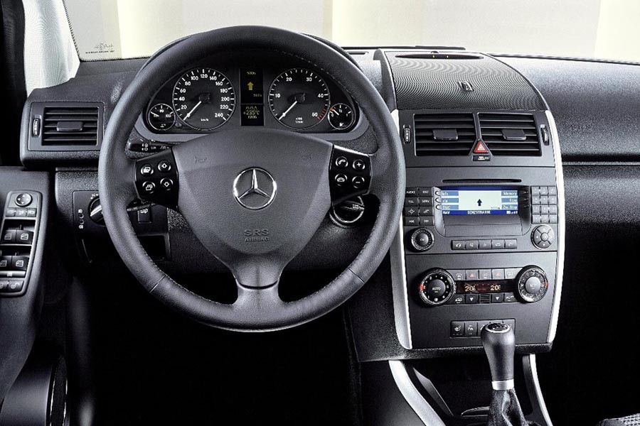 H παλαιότερη, 2ης γενιάς A-Class εστιάζει στην πρακτικότητα μέσω του συμπαγών διαστάσεων ψηλού αμαξώματός της με το διπλό δάπεδο τύπου «σάντουιτς» και τους ακροβολισμένους τροχούς. Στο συντηρητικής αισθητικής εσωτερικό της κυρίαρχο στοιχείο αποτελεί η υψηλή ποιότητα των μαλακών πλαστικών που συναντώνται σε ολόκληρη την επιφάνεια του ταμπλό και στις πόρτες. Παρά το κοντό της αμάξωμα (μήκος 3.840 χλστ.) η προγενέστερη A-Class είναι ιδιαίτερα άνετη για τις μετακινήσεις τεσσάρων επιβατών, ενώ μεγάλη χωρητικότητα διαθέτει και το πορτ μπαγκάζ των 435 λίτρων. Αρνητικό στοιχείο αποτελεί το ψηλό δάπεδο, που ενδέχεται να μην διευκολύνει κάποιους κατά την επιβίβαση και αποβίβαση.