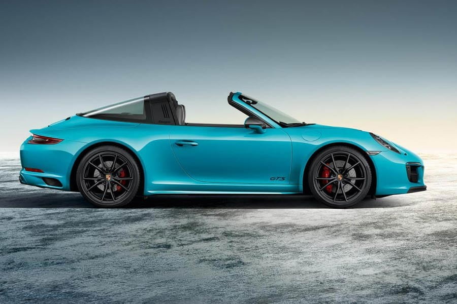 Παράλληλα, στο πλάι αναγράφεται το «GTS», τα τζάμια είναι φιμέ, ενώ τα λογότυπα στην πίσω πόρτα είναι σε μαύρο χρώμα. Στην όλη αναβάθμιση της εμφάνισης συμπεριλαμβάνεται και το ειδικό μπλε εξωτερικό χρώμα «Miami Blue» της Porsche, αλλά και οι 20άρες ζάντες Carrera S.